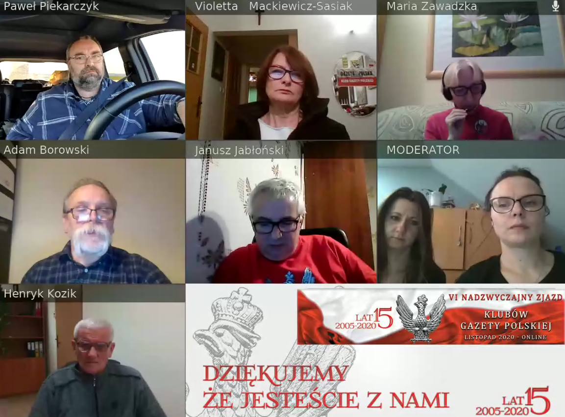 Z uwagi na pandemię koronawirusa w tym roku nie odbył się tradycyjny wyjazd na Węgry na święto 15 marca, ani odbywający się w czerwcu zjazd Klubów GP w Spale, a także nasze zwyczajowe jesienne spotkanie. To nie oznacza jednak, że wygasa zaangażowanie klubowiczów w Polskie sprawy. O tym mogliśmy przekonać się podczas wirtualnego Zjazdu Kubów GP, który odbywał się w miniony weekend.– Mimo, że formuła zjazdu jest nowa to szacujemy, że w zjeździe bierze udział kilka tysięcy osób z klubów z Polski i z zagranicy. Klubowicze chętnie angażują się w ten sposób. Dziękuję wszystkim zaangażowanym, aby zjazd przebiegł sprawnie w tym oczywiście Beacie Dróżdż i siostrom Ewie i Ani Wójcik