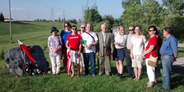 Klubowicze upamiętnili pamięć Ofiar tragedii smoleńskiej w miesięcznicę przy tablicy upamiętniającej Ofiary katastrofy smoleńskiej w Albrin Parku w Winnipegu w dn. 10 czerwca, 2016 r.