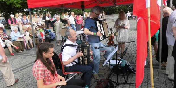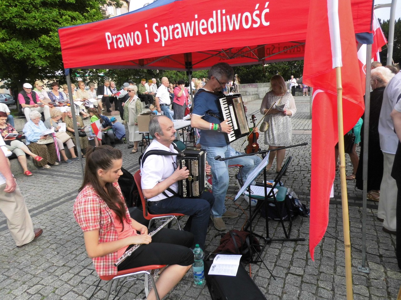72- rocznica Powstania Warszawskiego- na Placu Lotników : „13.Wspólne śpiewanie Pieśni Patriotycznych” – z panem posłem Leszkiem Dobrzyńskim i panem wicemarszałkiem Joachimem Brudzińskim.