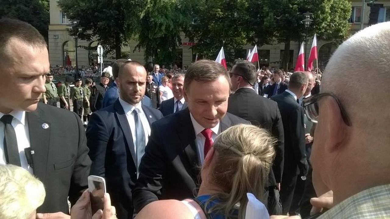 Wizyta Prezydenta był wydarzeniem wyjątkowym w swoim rodzaju. Spontaniczność Tyszan w czasie wizyty Prezydenta RP była wspaniała, skandowano przyśpiewki na cześć Prezydenta Andrzeja Dudy, wznoszono okrzyki pozdrowienia, a nawet odśpiewano „Sto lat”. Pierwsza część spotkania upłynęła na przemówieniach Prezydenta Miasta oraz Prezydenta RP. Wystąpienie Prezydenta Andrzeja Dudy było jednak zakłócone nienawistnym jazgotem wydobywającym się ze strony kilkudziesięciu przedstawicieli KOD-u stojących nieopodal. Ciekawe swoją drogą że pomimo zaostrzonych środków bezpieczeństwa KOD-owcy otrzymali zgodę na organizację zgromadzenia publicznego, – no ale ich zdaniem demokracji nie ma. Entuzjazm i aplauz Tyszan wywołany kontaktem z Prezydentem Andrzejem Dudą wywołał u KOD-owców chyba sporą frustrację bo padło również parę epitetów nie nadających się do publikacji. Jednak cały ten protest był niczym wobec autentycznej radości Tyszan z wizyty prezydenta. Prezydent mówił o Śląsku, Ślązakach przywiązaniu do tradycji i Wolności. Prezydent mówił również o wspieraniu rodziny i jej rozwoju, wspomniał również o programach przyjętych i wdrożonych przez rząd. Prezydent w dniu Ojca dziękował również Ojcom. Na koniec przemówienia Prezydent Andrzej Duda wyraził nadzieję „aby ta „Dobra Zmiana” się udała i żeby nawet Ci, którzy próbują w niej przeszkodzić, nie dali rady”. Po przemówieniu Prezydent wyszedł do ludzi, przywitaniom, pozdrowieniom i dowodom sympatii nie było końca. Chłodnym okiem warto wspomnieć, że taka wizyta przeprowadzona w ten sposób a więc w sposób otwarty i bezpośredni, przyniosła dla Tychów nową jakość. To już nie prominenckie gabinety, nie apartamenty zameczku w Promnicach, nie salony, a Tyszanie, na ich Placu Baczyńskiego, ugościli Prezydenta RP.