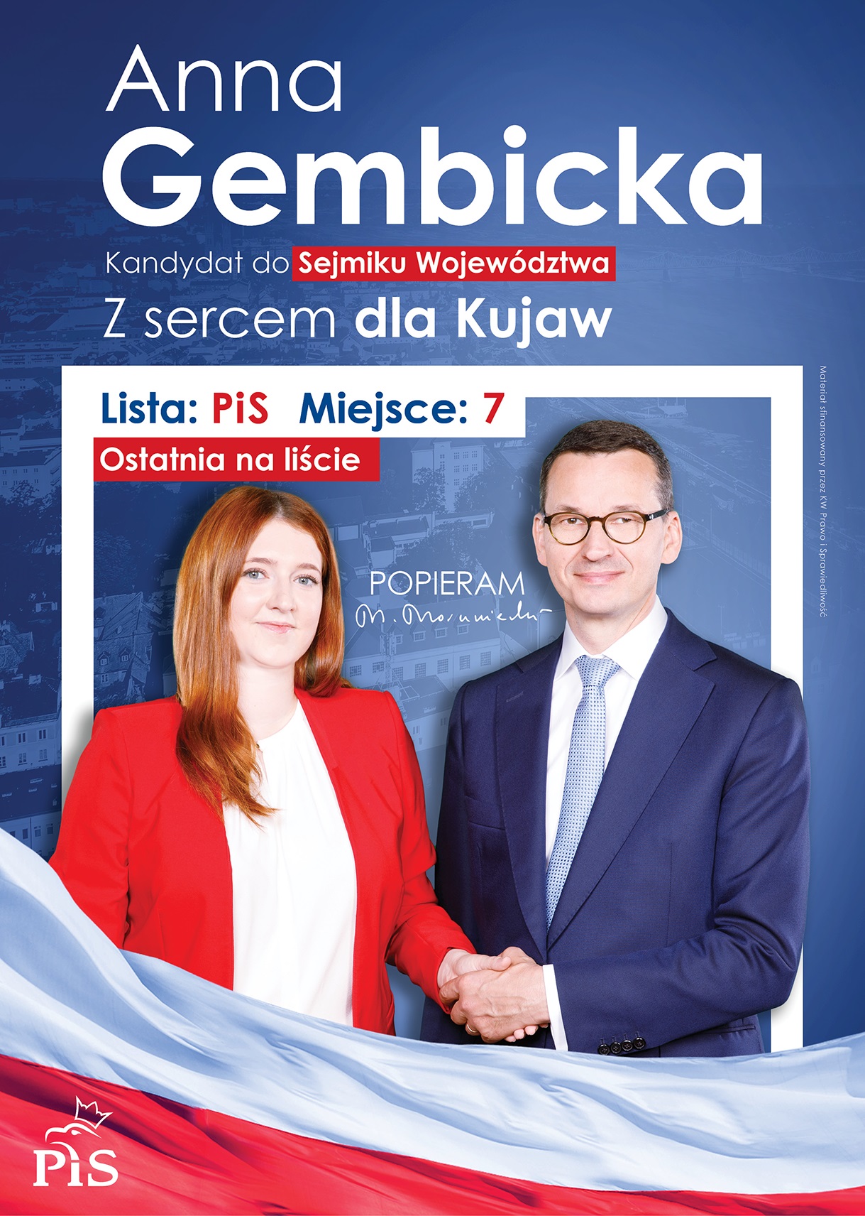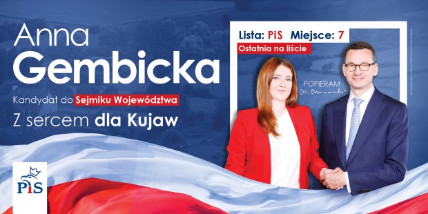 Anna Gembicka kandyduje do Sejmiku Województwa z okręgu 6 w województwie kujawsko-pomorskim.