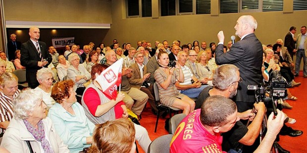 Zapytany, jak PiS zdyskontuje problemy Platformy i rządu, jakie wywołały opublikowane przez redakcję Wprost nagrania, Macierewicz odparł, że „nie ma powodu do euforii i świętowania”. – My jesteśmy ludźmi, którzy chcą odbudować, a nie niszczyć Polskę. A ten rząd każdego dnia ją niszczy. Jest największym wrogiem państwa polskiego” – powiedział. Polska będzie taka jak zadecyduje w wyborach suweren, czyli naród, jak będzie chciał nadal Donalda Tuska i „ciepłą wodę w kranie” to będzie to miał. A jak będzie chciał wolnej, suwerennej opartej na tradycji i patriotyzmie Polski, to wzorem Węgrów pokaże czerwoną kartkę Platformie Obywatelskiej, lewakom i postkomunistom odsyłając ich w polityczny niebyt. Kończąc swoje wystąpienie przytoczył słowa posła Krzysztofa Szczerskiego z wystąpienia w Sejmie 25 czerwca 2014 r.: „Premier Tusk mówi o tym, że przeciwko Polsce działa zorganizowana grupa, która chce ją osłabić i pyta: gdzie ona jest? To ja odpowiadam: niech pan spojrzy w lustro! Niech pan spojrzy na kolegów z Platformy! To wy jesteście tymi, którzy systematycznie Polskę rozmontowują, niszczą jej instytucje i żerują na polskim majątku i polskiej pracy. Zamieniacie Polskę w kupę kamieni, czyli w gruzowisko. Jesteście jak ten Obcy, który przyssał się do Polski i żyje jej kosztem. Nie mamy dla was współczucia, dlatego, że gardzicie Polakami, to wynika jasno z rozmów, które zostały ujawnione. Nie cierpicie Polaków i Polski, nie szanujecie jej, nie znacie naszej wartości. Jesteście tu obcy”. […] „Wasze dalsze trwanie przy władzy to narażanie polskiego państwa na międzynarodowe zagrożenia. To, co powiedział minister spraw zagranicznych o odstąpieniu od bezwartościowego jego zdaniem sojuszu transatlantyckiego, po to by nie drażnić Niemiec i Rosji to niebywały skandal. Uczynienie z dyplomatów posłańców, którzy mają zaspokajać fanaberie premiera, jest uwłaczające dla służby zagranicznej. Szkodzicie polskiej racji stanu. Ale Polska jest silniejsza niż wasze rządy. Polska ucierpi, ale was przetrwa. Tylko, dlaczego ma cierpieć przez was jeszcze dłużej? Wierzymy w Polskę i ufamy Polakom. Po waszym odejściu nadejdą lepsze dni. Im szybciej odejdziecie, tym lepiej”.