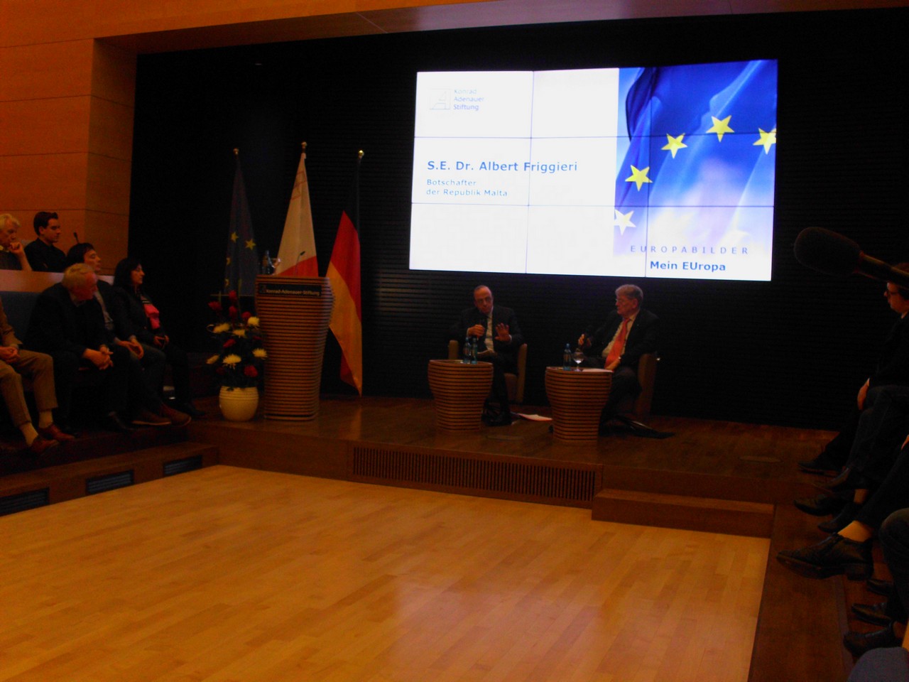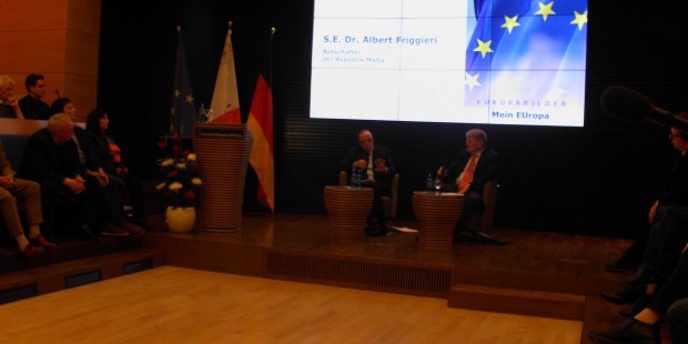 Das zweite Europabild 2017 gestaltet der Botschafter der Republik Malta, S.E. Dr. Albert Friggieri. Malta ist das kleinste Land der Europäischen Union. 1530 erhielt der Malteserorden die Inselgruppe im Mittelmeer als Lehen. Nach 150 Jahren als britische Kronkolonie erlangte Malta 1964 seine Unabhängigkeit. Seit dem 1. Mai 2004 ist Malta Mitglied der Europäischen Union, seit dem 1.Januar 2008 gehört es zur Eurozone. Derzeit hat Malta den Vorsitz im Rat der Europäischen Union.