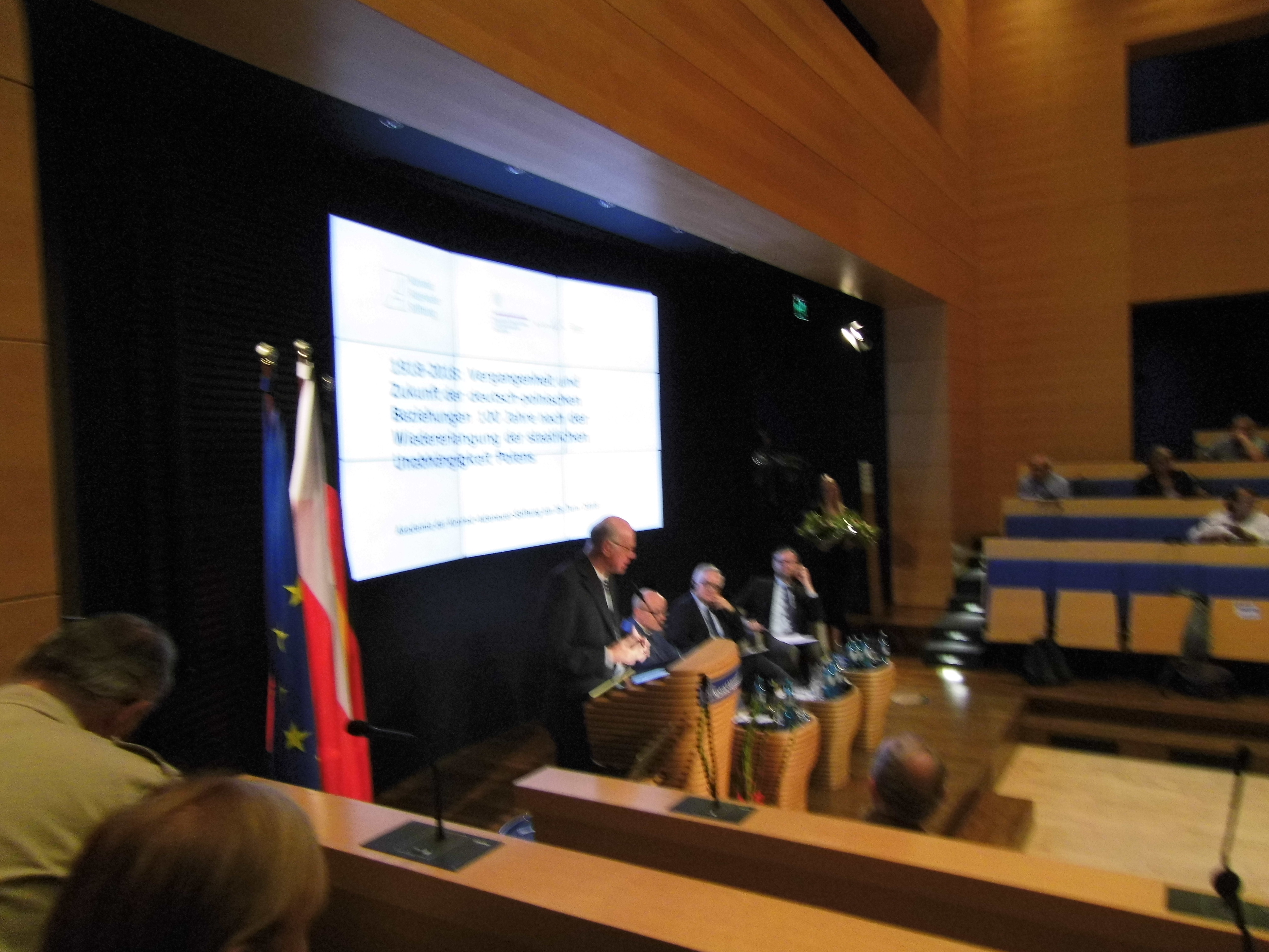 Wszystkich prelegentów i gości powitał  prof. dr Norbert Lammert, a.D. Marszałek Bundestagu.Obecny był także a.D. przewodniczący Parlamentu Europejskiego Hans-Gerd Pottering. Po powitaniu uczestników spotkania, odczytał referat Ambasador RP w Berlinie. Odbyły się dwa panele dyskusyjne: pierwszy pt. „Przyszłość polsko-niemieckich stosunków”, który moderowała dyskusję pani Agnieszka Łada dyrektor Europa-Program z panem wiceministrem MSWiA Pawłem Szefernakerem i panem Paulem Ziemniakiem posłem do Bundestagu z CDU. Rodzice pana Paula, gdy miał trzy lata opuścili Polskę w 1988 roku, ze Szczecina promem do Travemünde, to tzw. późni przesiedleńcy (Spätaussiedler) z Polski mający niemieckie pochodzenie. Panel drugi dyskusyjny pt.” Spojrzenie na stosunki polsko-niemieckie w ostatnim stuleciu „poprowadził z zaproszonymi gośćmi dr Kai-Olaf Lang z panią dr Justyną Schulz, dyrektor Instytutu Zachodniego, szefem redakcji miesięcznika „Więź” panem Zbigniewem Nosowskim oraz panem prof. dr Stephan Lehnstaedt z Tour College Berlin. Wspaniała odpowiedź pani dr Justyny Schulz na podchwytliwe i przewrotne pytanie od dyskutantki ze zgromadzonej publiczności nagrodzona została aplauzem klubowiczów GPB-B, a także konkretne i rzeczowe odpowiedzi pana wiceministra Pawła Szefernakera były nagradzane brawami. Oczywiście na pytanie od klubowiczów odnośnie, dlaczego nadal Mniejszość Polska nie jest uznawana przez władze RFN, czyli nadal trwają skutki dekretu zbrodniarza wojennego Hermana Göringa z dnia 27.02.1940 Roku delegalizujące Mniejszość Polską i konfiskujące jej majątek, nierzeczowo i pokrętnie odpowiedział pan poseł Paul Ziemniak, którego ojciec jak sam poseł zaznaczył był pułkownikiem Wojska Polskiego. Pewny niesmak budzi fakt braku udziału prezesów dużych organizacji polonijnych w tym podniosłym wydarzeniu. Po spotkaniu wszyscy uczestnicy spotkania zostali zaproszeni na smaczny poczęstunek.