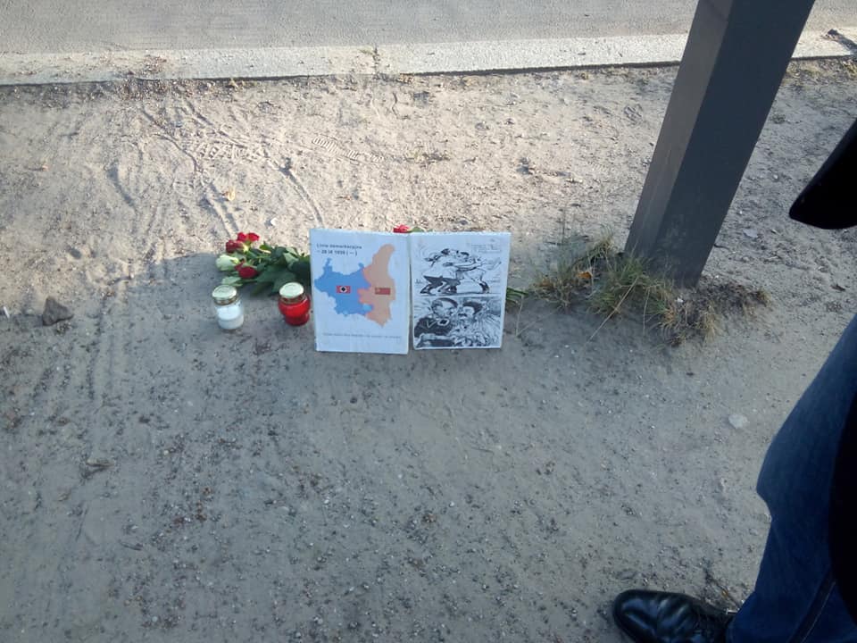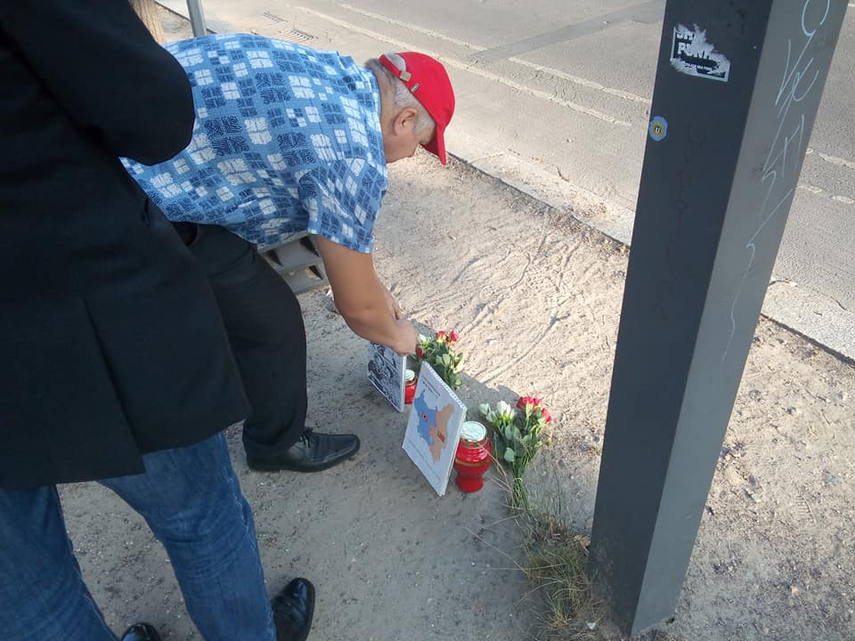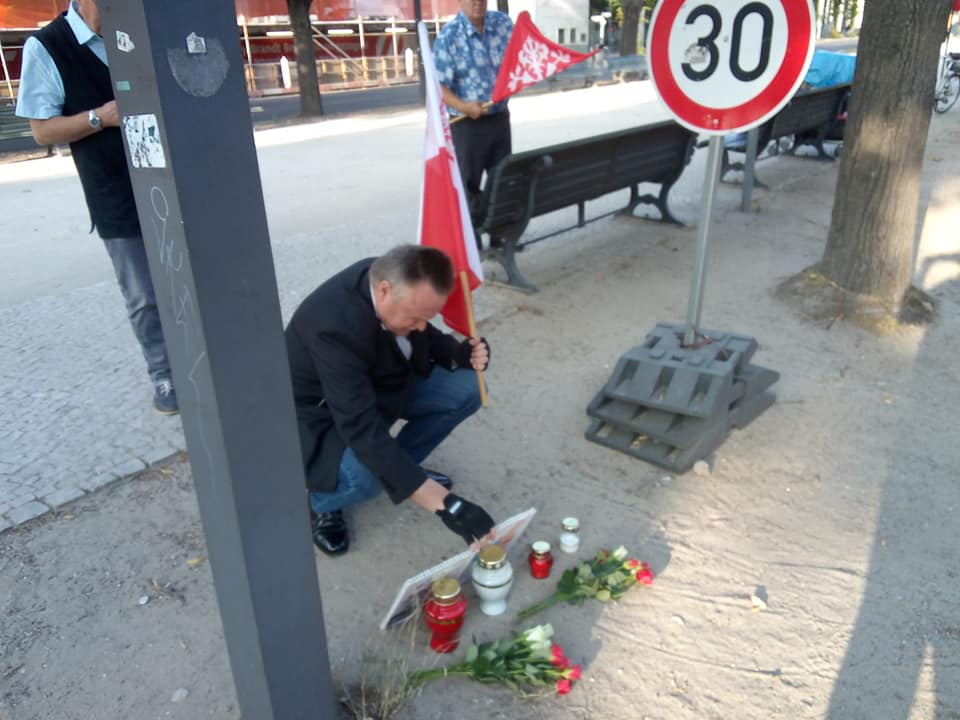 Zapaliliśmy znicze i złożyliśmy wiązanki kwiatów w ojczystych barwach naprzeciwko gmachu ambasady Rosji, oraz modliliśmy się w języku polskim i niemieckim za Rodaków, ofiary dwóch najeźdźców!