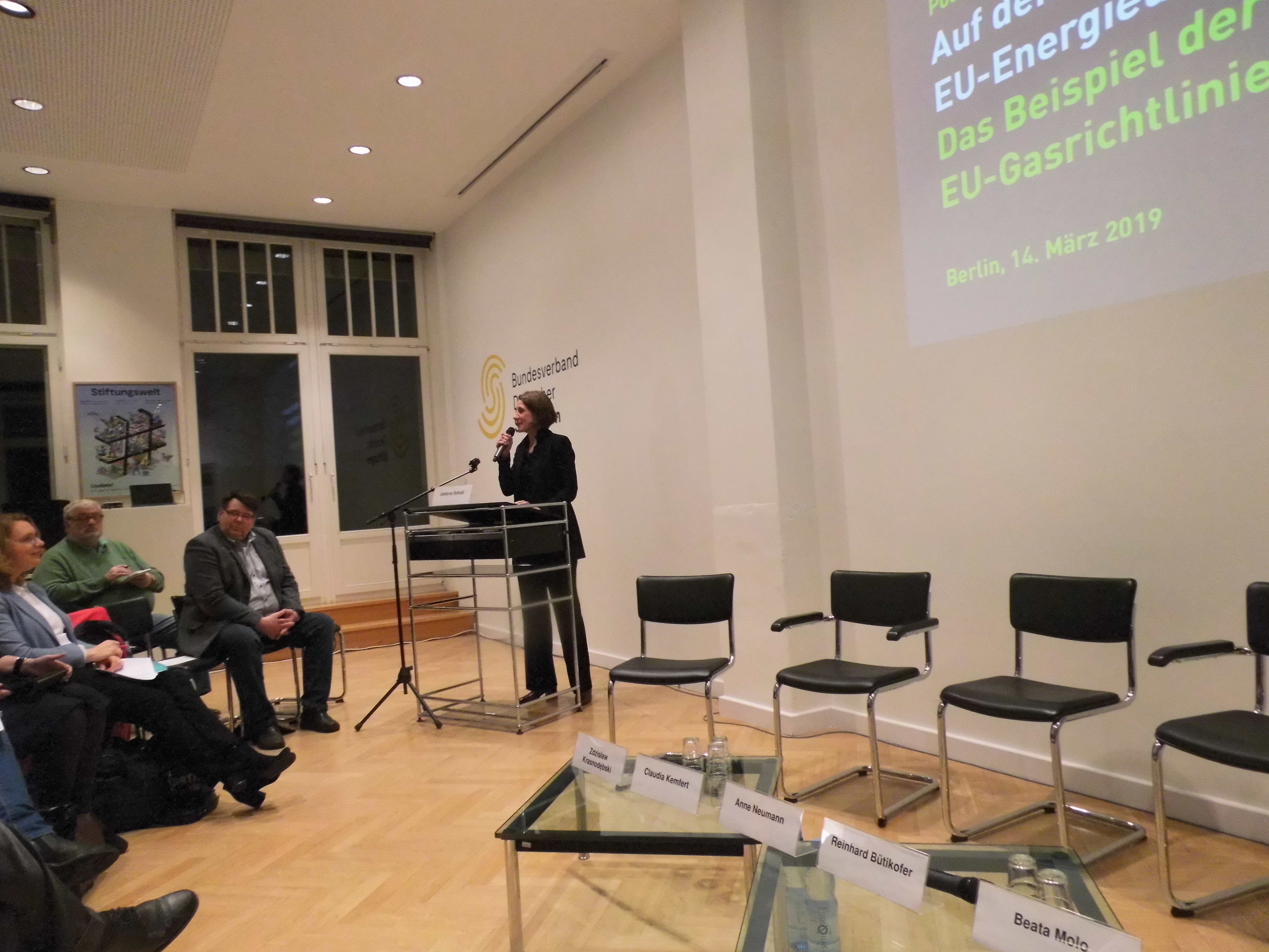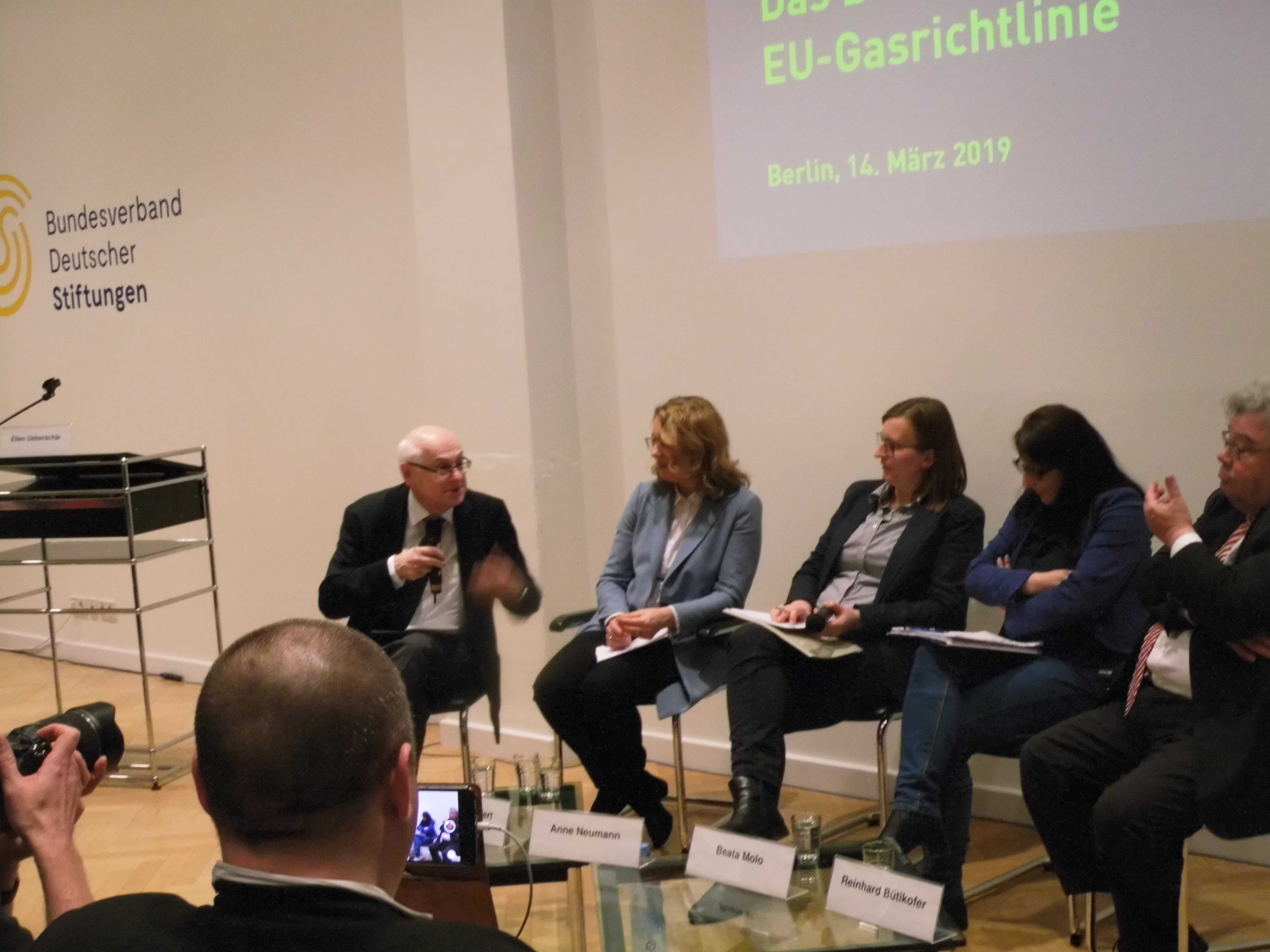 Dzięki inicjatywie pani dyrektor Instytutu Zachodniego w Poznaniu dr Justyny Schulz i przychylności zarządu fundacji Böll pani dr Elleny Ueberschär w Domu Fundacji Niemieckich w Berlinie dnia 14.marca 2019 roku odbyło się sympozjum na temat: ”W kierunku unii energetycznej EU- przykład dyrektywy gazowej UE„. Powitała zaproszonych gości i prelegentów pani dyrektor Justyna Schulz a następnie zabrała głos i zaprosiła do dyskusji panelowej pani dr Ellen Ueberschär znanych i cenionych w Polsce i RFN prelegentów. Przybili pani prof. dr Beata Molo z Katedry Stosunków Międzynarodowych Akademii Krakowskiej im. Andrzeja Frycza Modrzewskiego, pan wiceprezydent Parlamentu Europejskiego prof. dr Zdzisław Krasnodębski, pani prof. Claudia Kemper z Niemieckiego Instytutu Badań Ekonomicznych oraz pan prof. Reinhard Bütikofer niemiecki poseł do Parlamentu Europejskiego. Moderowała dyskusję z zaproszonymi gośćmi jak i publicznością pani prof.Anne Neumann z Niemieckiego Instytutu Badań Ekonomicznych. Dobrze, że doszło do tak ważnej dyskusji o wspólnej polityce energetycznej UE i zagrożeniach wynikających z odmiennego podejścia strony polskiej i niemieckiej dotyczącego projektu gazowego tzw. NORD STREAM 2. Warto podkreślić, że w ostatnich tygodniach Parlament Europejski i Komisja Europejska zgodziły się na kompromis, który, między innymi osłabia monopol gazowy osób trzecich spoza UE, takich jak rosyjski Gazprom . Pozostaje niejasne, czy ten specyficzny kompromis będzie miał wpływ na budowę rurociągu NORD STREAM 2 „ .W wypowiedziach dyskutantów przebijała troska o braku spójności i solidarności odnośnie wspólnej polityki energetycznej UE. Trudno ocenić, jakie będą konsekwencje napięć w tym ważnym obszarze europejskiej polityki energetycznej? W dyskusji wzięli udział klubowicze Gazety Polskiej Berlin-Brandenburg; podkreślili wagę istniejących już magistrali gazowych przebiegających przez Ukrainę i tym samym utraty ważnego dochodu z tranzytu gazu dla gospodarki Ukrainy i jak wspomniał w odpowiedzi na zadane pytanie pan prof. Bütikofer utrata dochodu Ukrainy może się wahać w granicach 2-3 mld euro. Klubowicze GP BB zaznaczyli ,że już NORD STREAM 1 blokuje rozwój polskich portów w Świnoujściu i Szczecinie, ponieważ rura nie jest wkopana w dno Bałtyku, zatem większe statki nie mogą zawijać do tych portów. Po ożywionej dyskusji organizatorzy zaprosili uczestników spotkania na smaczny poczęstunek i dalsze kuluarowe rozmowy.