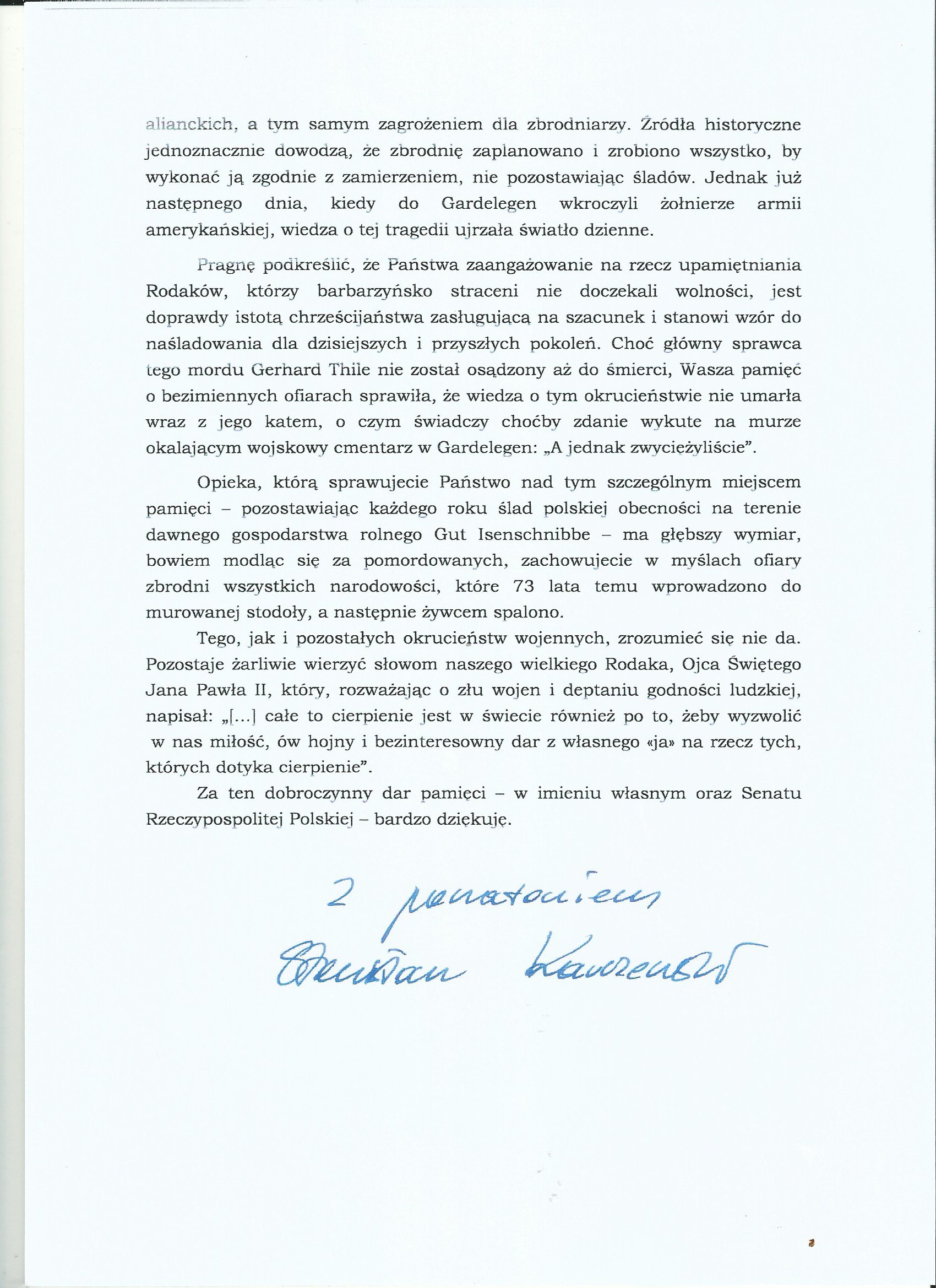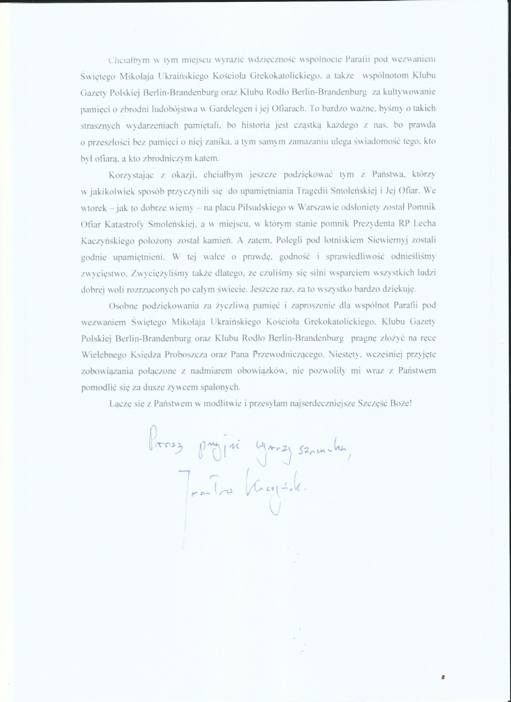 Aby o tych zdarzeniach nie zapomnieć, aby nie mogły się więcej powtórzyć organizacje:Klub Gazety Polskiej Berlin-Brandenburg ,Klub Rodła Berlin-Brandenburg