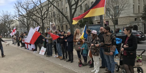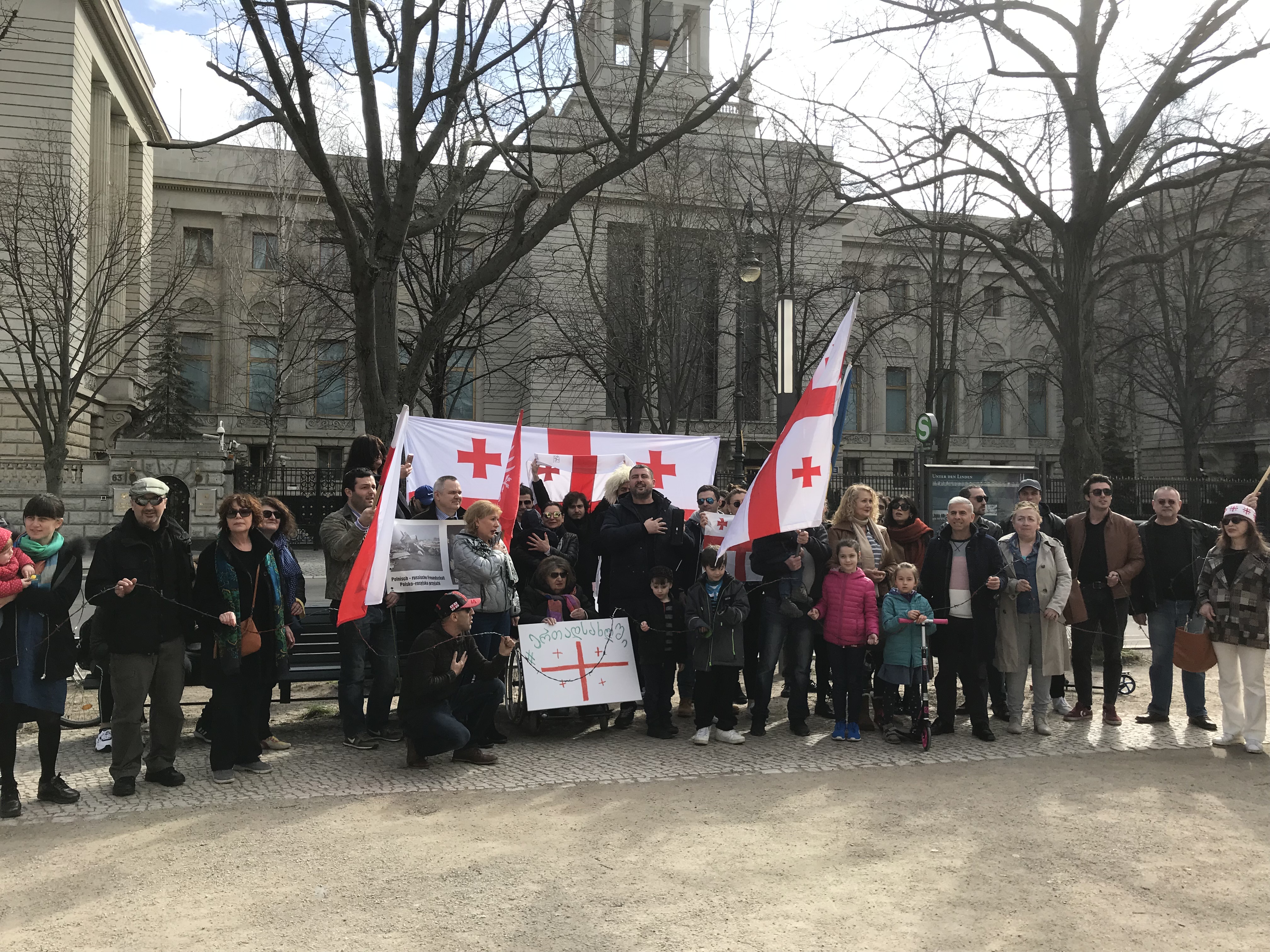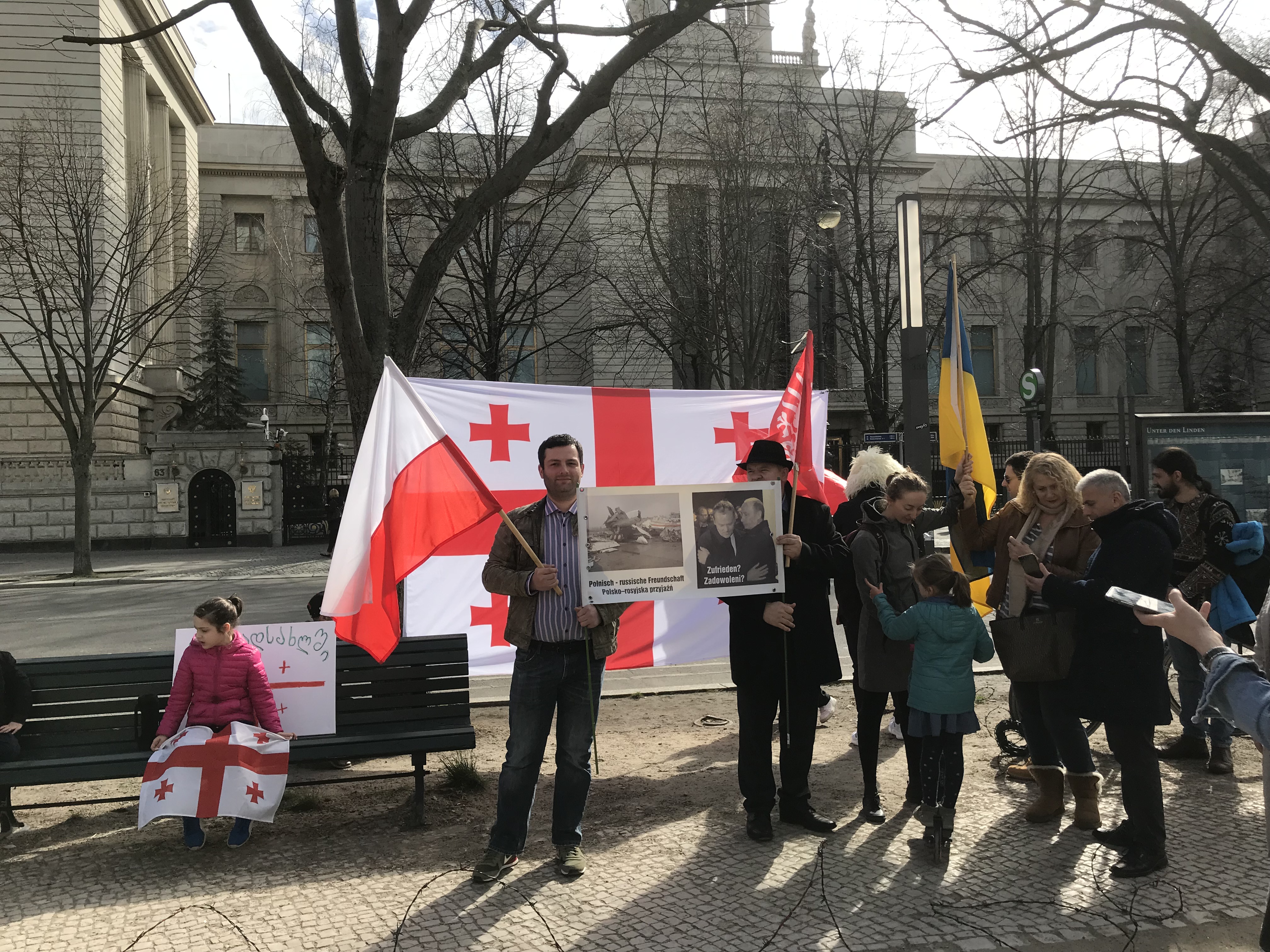 W niedzielę dnia 24 marca 2019 roku odbyły w wielu miastach na świecie(Ankara, Ateny, Bruksela, Londyn Paryż, Tel Aviv itd..) demonstracje diaspory gruzińskiej przeciwko okupacji ok. 20% terytorium Gruzji (Abchazja, Osetia Południowa) przez zbrodniczy reżim putinowski. Nie zabrakło demonstracji antyputinowskiej Gruzinów przed ambasadą rosyjską w Berlinie, znajdującej się przy znanej, chętnie odwiedzanej przez turystów ulicy Unter den Linden. Oprócz imigrantów z Gruzji w berlińskiej demonstracji wzięli udział przedstawiciele diaspory ukraińskiej i członkowie klubu Gazety Polskiej Berlin-Brandenburg. Uczestnicy protestu skandowali hasła antyputinowskie w języku niemieckim i gruzińskim, np.”Putin terrorysta, Rosja okupant, Putin ręce precz od Gruzji itd.”. Warto przypomnieć, że konflikt zbrojny armii gruzińskiej od 7-15.08.2008 z separatystami i wspomagającymi ich wojskami rosyjskimi, o mało nie doprowadził do zajęcia stolicy Gruzji , Tbilisi. Tylko dzięki wspaniałej postawie śp. zamordowanego w upozorowanej katastrofie lotniczej pod Smoleńskiem 10.04.10.Pana Prezydenta Lecha Kaczyńskiego nie doszło do tragedii i okupacji całego państwa. To na ogromnym, spontanicznym wiecu w Tbilisi 12.08.2008 roku wspólnie z prezydentami Litwy, Łotwy Estonii, Ukrainy Pan Prezydent słynnym przemówieniem „zatrzymał „ u wrót stolicy Gruzji „siepaczy Putina. Rosja uważa, że dawne czasy upadłego niecałe 20 lat temu imperium wracają, że znów dominacja będzie cechą tego regionu. Nie będzie! – podkreślił wówczas na wiecu śp. Pan Prezydent Lech Kaczyński. Dobitnie zaznaczył, że „wszyscy w tym samym okresie lub okresach nieco innych” poznali „tę dominację”. Zamordowany śp. Pan Prezydent powiedział cyt.:”, że „te czasy się skończyły raz na zawsze – nie na 20, 30 czy 50 lat; Chciałbym to powiedzieć nie tylko wam, chciałbym to powiedzieć również tym z naszej wspólnej Unii Europejskiej, że Europa Środkowa, Gruzja, że cały nasz region będzie się liczył, że jesteśmy podmiotem . I my też świetnie wiemy, że dziś Gruzja, jutro Ukraina, pojutrze państwa bałtyckie, a później może i czas na mój kraj; na Polskę”. Przywódcy krajów zachodnich popełnili ogromny błąd, nie wyciągając odpowiednich wniosków z tamtej gruzińsko-rosyjskiej wojny. Nie posłuchano naszego śp. Pan Prezydenta , który mówił jasno, że po Gruzji przyjdzie kolej na Ukrainę, a potem może na innych. Przekonały się o tym Ukraina i świat w 2014 roku. Nie byłoby aneksji ukraińskiego Krymu w 2014 roku i walk w Donbasie gdyby nie było wojny w Gruzji 2008 roku. To zwycięstwo nad Gruzją utwierdziło satrapę Władimira Putina w przekonaniu, że siła militarna to najbardziej skuteczny i łatwy w użyciu narzędzie polityki Moskwy. Terrorysta Putin nauczył się jednego: uderzać słabszego i tylko wtedy, gdy jest pewność, że nikt nie przyjdzie mu z pomocą.