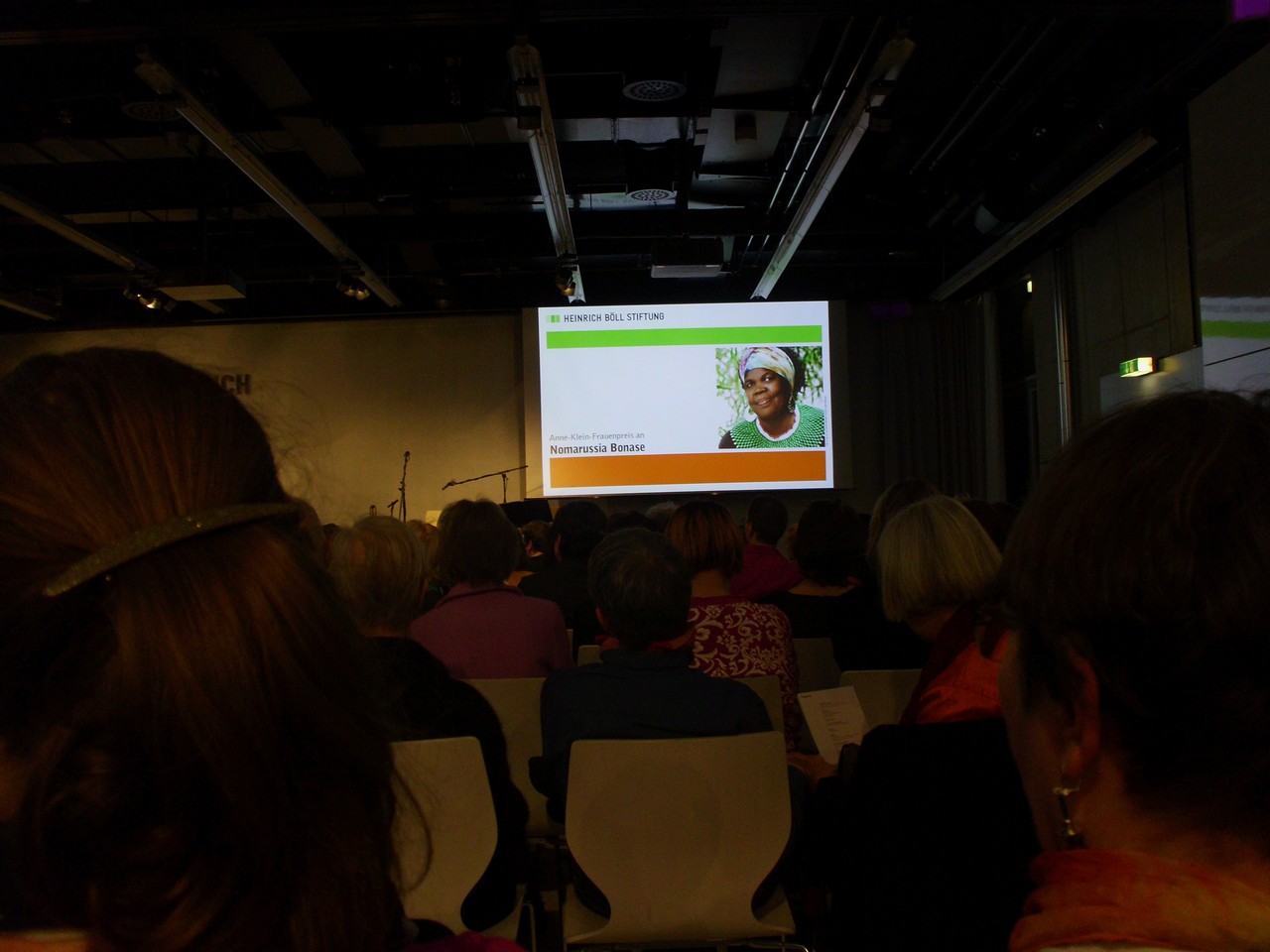 Nomarussia Bonase setzt sich in Südafrika Gerechtigkeit für die Opfer und Überlebende des Apartheidregimes ein. Sie tut das auch und besonders für Frauen, die nicht von der Wahrheits- und Versöhnungskommission (1996 – 1998) gehört wurden und denen Gerechtigkeit und Reparation zustehen sollte. Nomarussia Bonase ist National Coordinator bei “Khulumani”. „Khulumani“ bedeutet „laut sprechen, aussprechen, das Wort ergreifen“. Der Organisation gehören 104.000 Apartheidopfer/-überlebende an. Die Lokalgruppen sind sehr gut vernetzt. Hier bestärken sich vor allem Frauen gegenseitig, gemeinsam für die politische Anerkennung des verübten Unrechts an Frauen zu kämpfen. Sie fordern zum Beispiel anzuerkennen, dass sexuelle Gewalt bewusst als Waffe eingesetzt wurde. Sie bieten konkrete Beratungen bei Gesundheitsproblemen und bei rechtlichen Fragen. Sie ermutigen Frauen, den Versöhnungsprozess aus frauenpolitischer Perspektive kritisch zu hinterfragen, und sich nicht in die Rolle der passiven Opfer oder der Bittstellerinnen drängen zu lassen.
