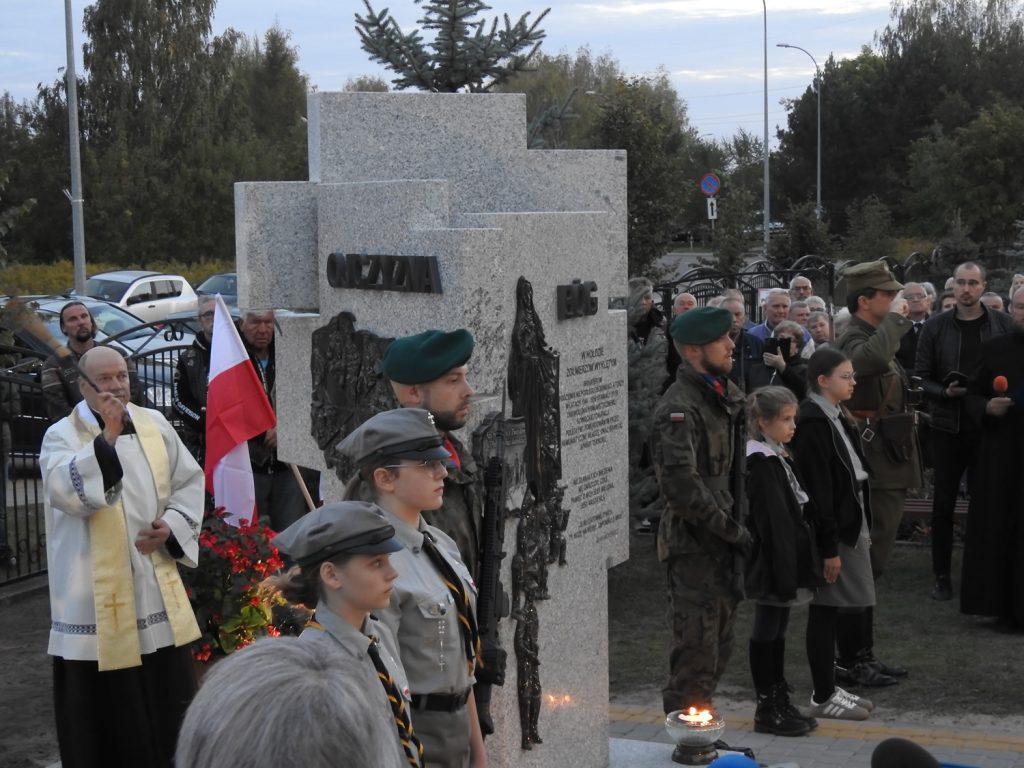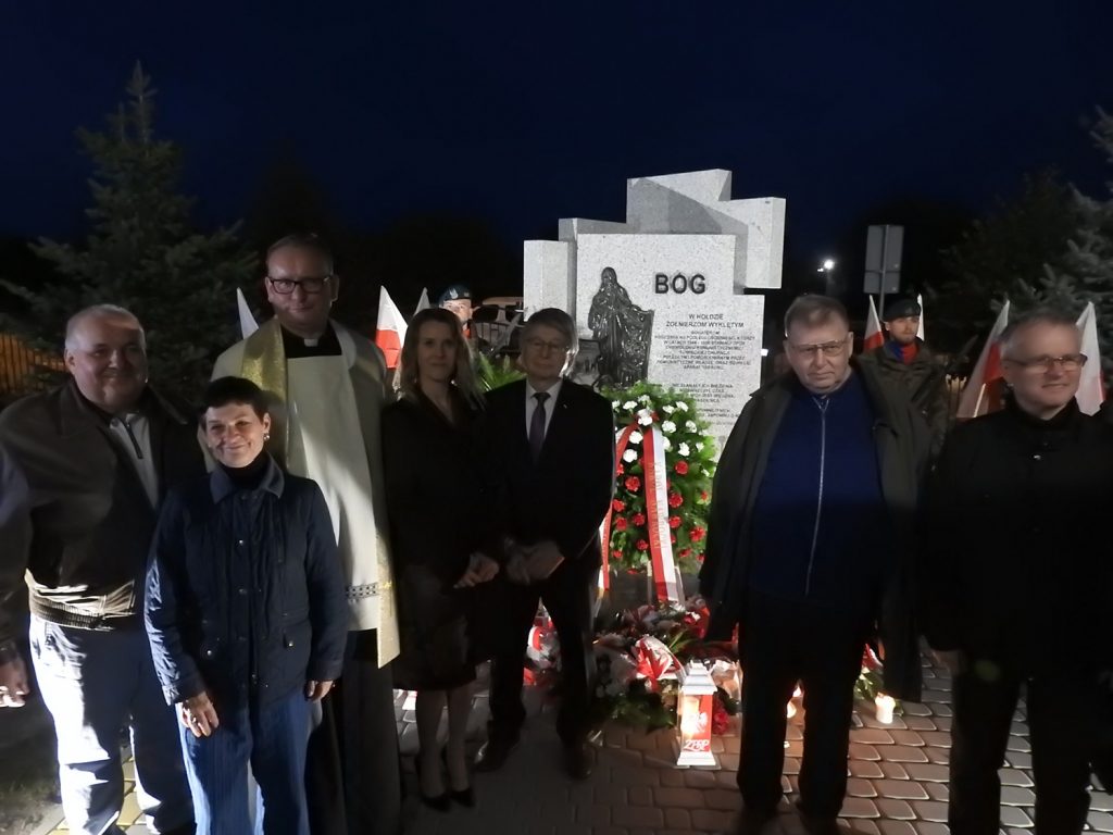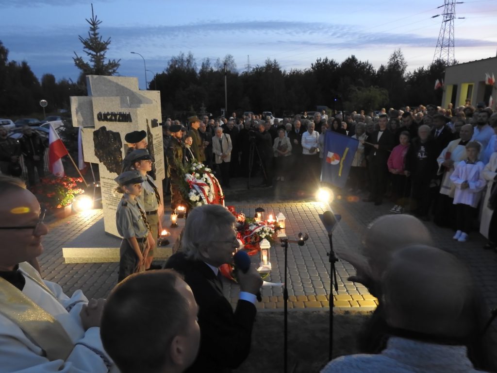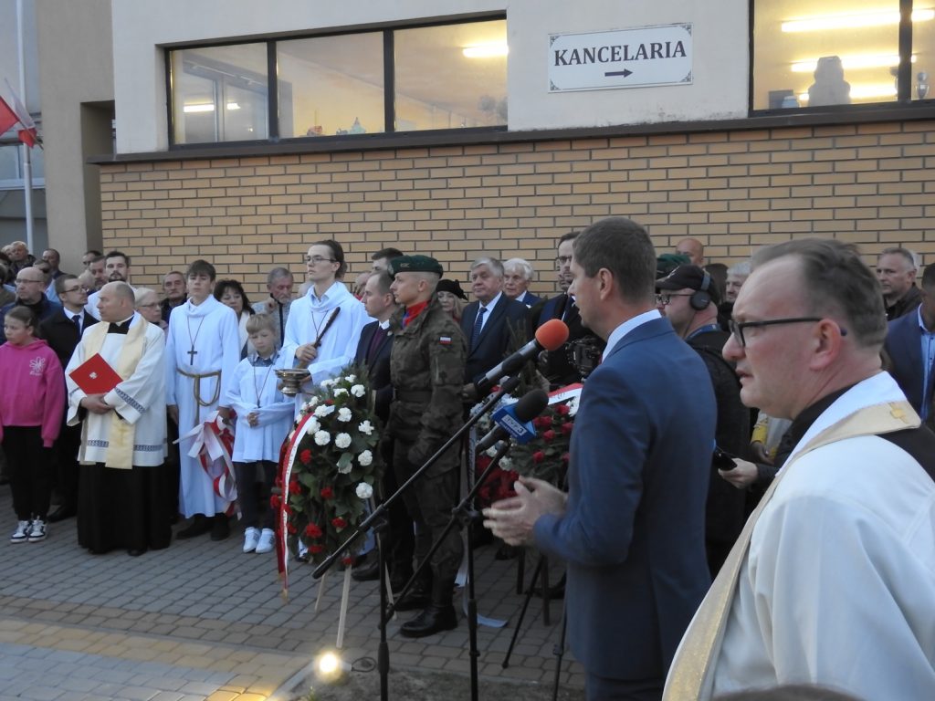 Po Mszy Św., na posesji Kościoła został odsłonięty pomnik, przed którym delegacje złożyły wieńce i wiązanki. Podczas uroczystości głos zabrali poseł Dariusz Piontkowski oraz ks. kan. Adam Snarski proboszcz miejscowej parafii. List od Prezydenta dr Karola Nawrockiego przeczytał zastępca szefa Kancelarii Prezydenta RP, p. minister Adam Andruszkiewicz.