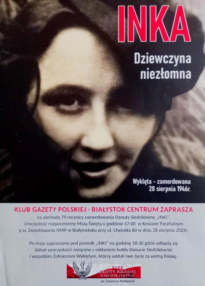 związane z upamiętnieniem 79 rocznicy zamordowania Danuty Siedzikówny INKl