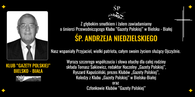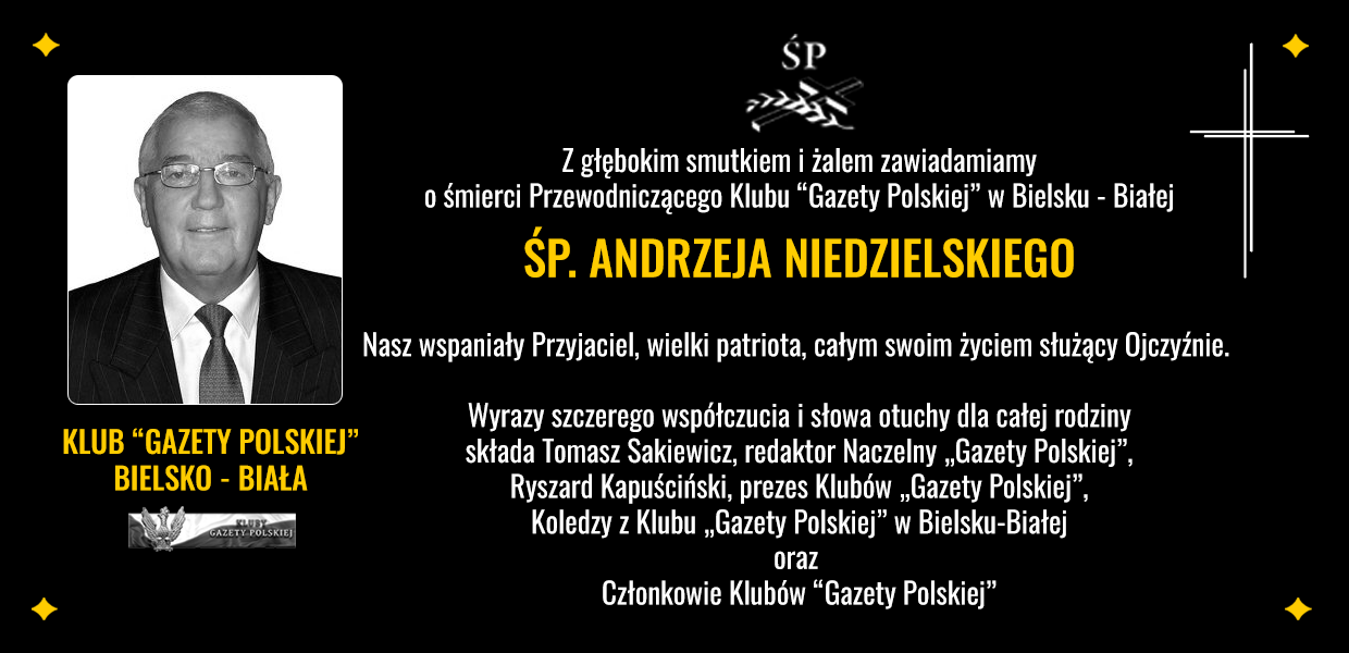 Z głębokim smutkiem i żalem zawiadamiamy o śmierci Przewodniczącego z Kluby „Gazety Polskiej” w Bielsku – Białej
