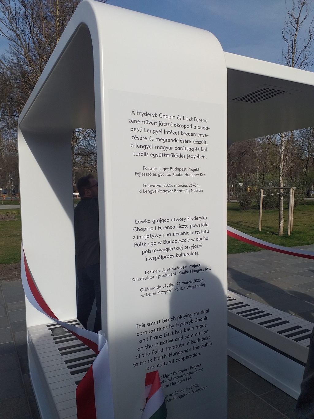 23.03.2023 r. Polsko-Węgierski Dzień Przyjaźni został zainaugurowany na Nagy Imre platz. Joanna Urbanska, dyrektor instytutu Polskiego w Budapeszcie powiedziała, że na ich prośbę Kuube Węgry Kft. stworzyły Inteligentną ławkę, z której popłynie muzyka światowej sławy artystów Fryderyka Chopina i Ferenca Liszta, w wykonaniu pianisty Gabora Farkasa.