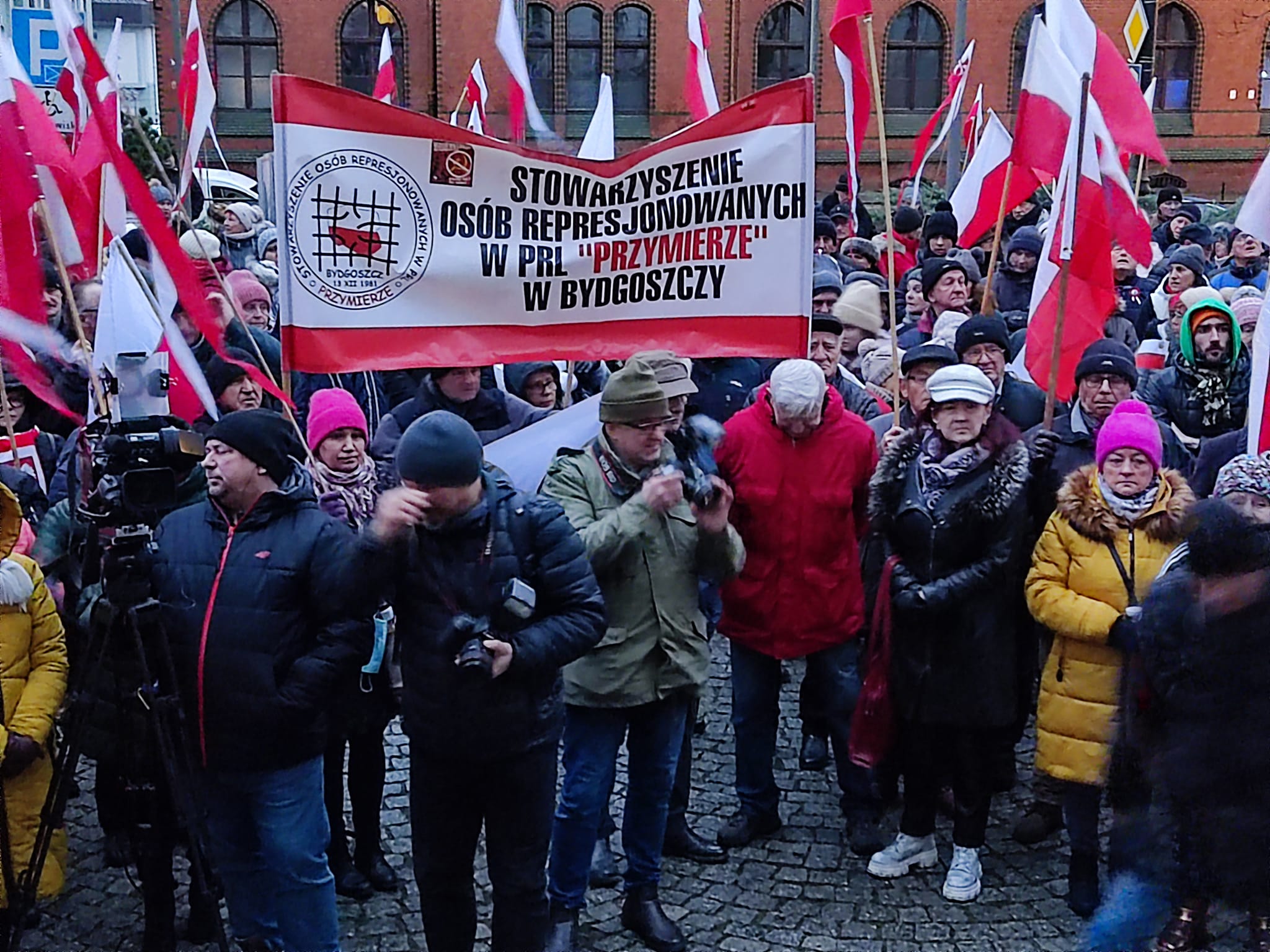 13 stycznia pod Urzędem Wojewódzkim w Bydgoszczy mimo zimna, padającego deszczu zebrało się ponad 1000 pragnących zaprotestować przeciwko kneblowaniu ust, i bronić pierwszych od wielu lat więźniów politycznych, mieszkańców Bydgoszczy i okolic.
