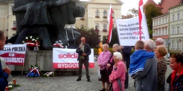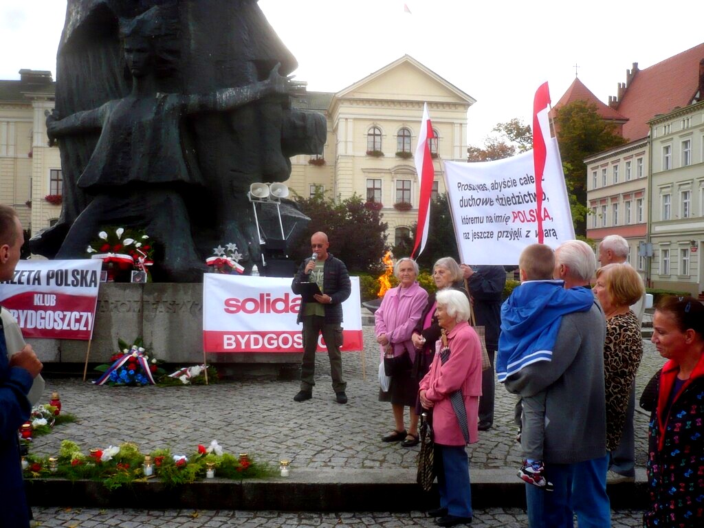 – Naszą obecnością przypominamy, że nie pozwolimy sprawy katastrofy smoleńskiej schować, ukryć, zamieść pod dywan. Jesteśmy po to, aby pamiętać o tych ludziach, którzy zginęli. Domagamy się uczciwego śledztwa, domagamy się ujawnienia przyczyn katastrofy smoleńskiej – tymi słowami rozpoczął bydgoskie uroczystości przewodniczący Bydgoskiego Klubu Gazety Polskiej Krystian Frelichowski.Po nim głos zabrał Tomasz Jasiński -Kim jest Donald Tusk? Hochsztaplerem? A może mężem stanu? Zwolennik Platformy żachnie się i powie, że łatwo deprecjonować sukces, gdy dotyczy on naszego wroga. To tak jak z koszulą co pasuje na wymiar. Dobra będzie ta, która bliższa ciału. Żeby nam tego nie zarzucano, pójdziemy innym tropem.