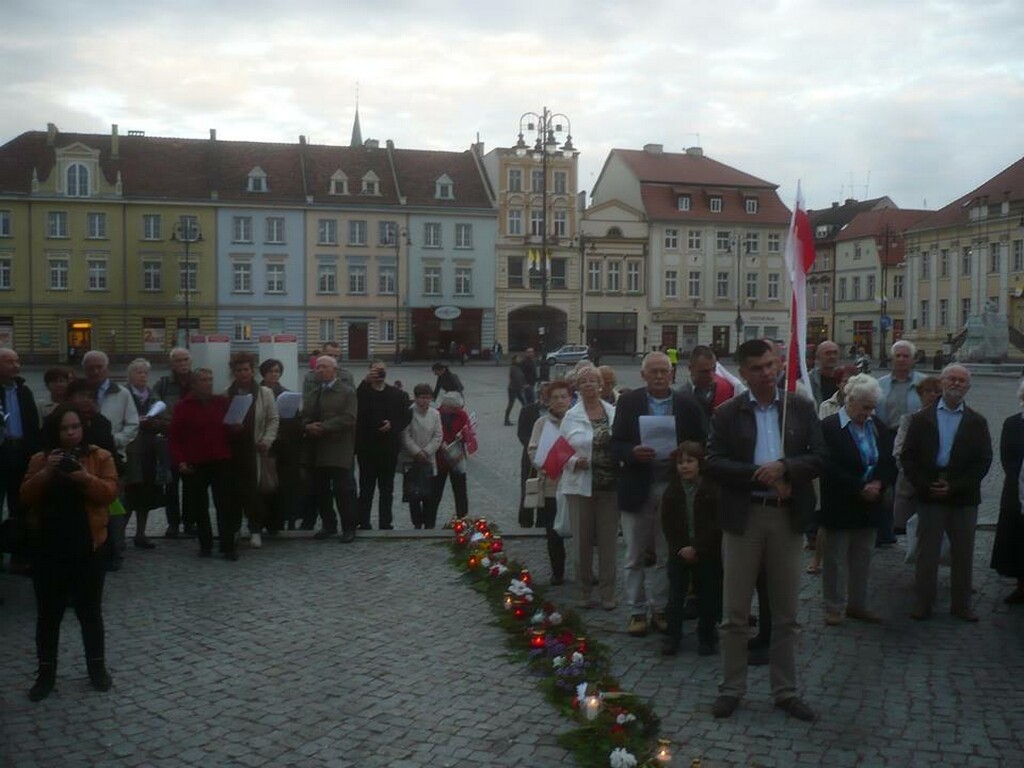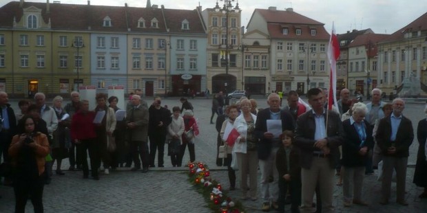 10 X 2014r. Mieszkańcy Bydgoszczy zebrali się na Starym Rynku, by uczcić pamięć ofiara Katastrofy Smoleńskiej, a także domagać się rzetelnego śledztwa w sprawie jej przyczyn. Zebrani ułożyli krzyż z kwiatów i zniczy. Przewodniczący Klubu „Gazety Polskiej” Krystian Frelichowski odczytał Apel Klubów Gazet Polskiej „ W ciągu ostatnich kilku tygodni sprawa tragedii Smoleńskiej dotarła do przedstawicieli wielu innych narodów. W USA i Kanadzie Klubom Gazety Polskiej udało się zorganizować wspólne protesty diaspory polskiej i ukraińskiej, ale także litewskiej, łotewskiej i estońskiej przeciwko agresji Moskwy na Ukrainie i rosyjskiemu terroryzmowi, którego ofiarą padł polski prezydent i prawie sto towarzyszących mu osób. Wspólnym elementem tych protestów było żądanie ukarania winnych smoleńskiego zamachu.