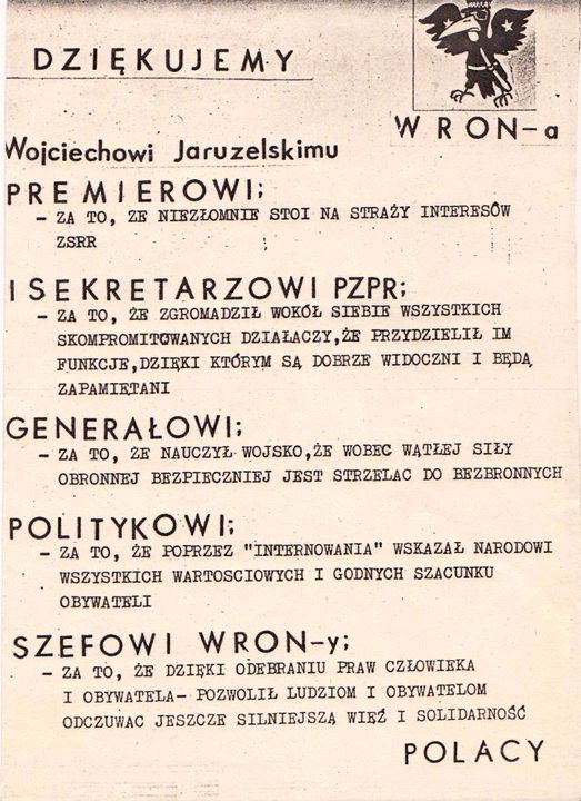 W dniu 30 V 2014r. Klub „Gazety Polskiej” we współpracy z Solidarnymi2010 zorganizował wykład pod czas, którego przypomniano „karierę” i liczne zbrodnie Jaruzelskiego. Prelekcje wygłosiła mgr. Małgorzata Jarocińska, nauczycielka, wielokrotnie wyrzucana z pracy w czasach PRL-u za naukę prawdy. Wszyscy przybyli otrzymali kopię tzw, „Wrony” – jednej z pierwszych ulotek stanu wojennego. Spotkanie poprowadził Krystian Frelichowski W ten sposób rozpoczęliśmy akcję odkłamywania historii, następnym etapem będzie przygotowanie ulotek informacyjnych, które będą uświadamiać społeczeństwo o prawdziwych „dokonaniach” Jaruzelskiego.