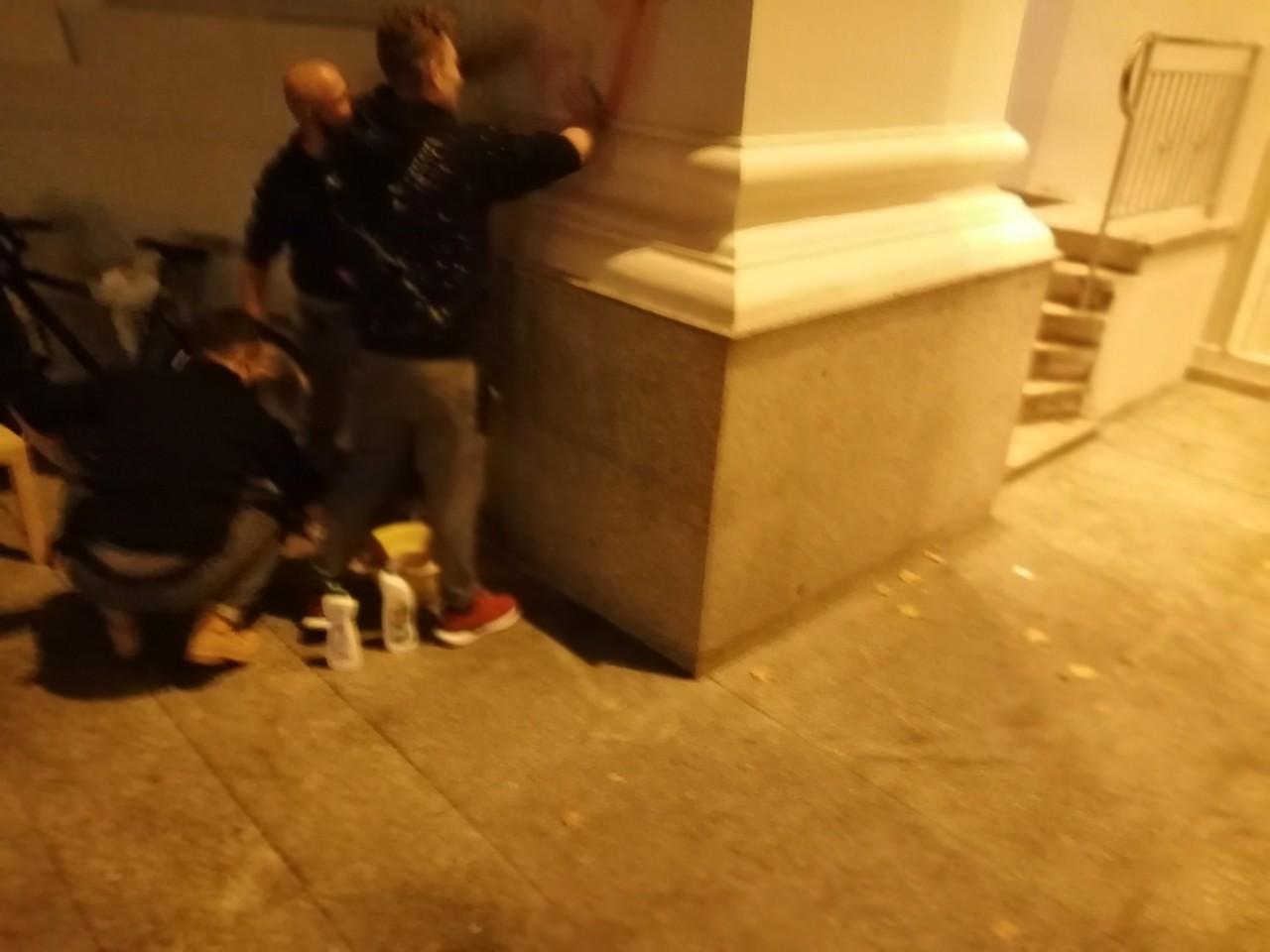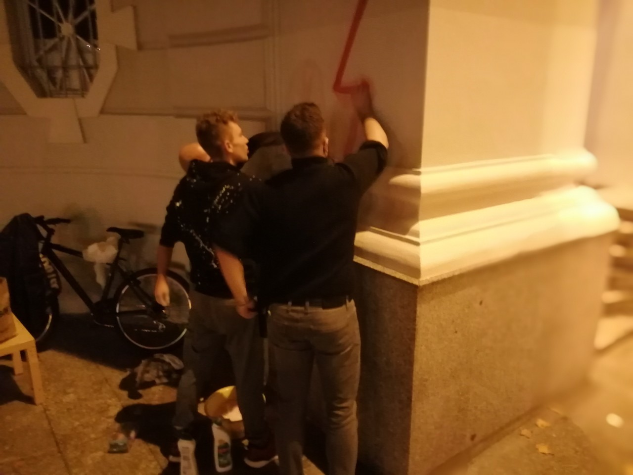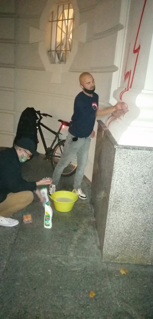 Młodzi ludzie zaczęli dziś wielkie sprzątanie po rówieśnikach spod znaku czerwonego pioruna, usunęli cmentarne kwiaty złożone pod biurem PiS-u zawożąc je na groby żołnierzy, myją fasady kościołów. Nikt im tego nie podpowiadał, nie zachęcał czynią to z potrzeby serca. W akcji wziął udział m.in. syn przewodniczącego bydgoskiego kluby GP Michał Frelichowski: wypowiedź dla portalu Bydgoszcz24 . – Nie zastanawialiśmy się długo Te bazgroły i haniebne znaki muszą jak najszybciej zniknąć. Takie dewastowanie kościołów nie powinno mieć miejsca – powiedział Michał Frelichowski.