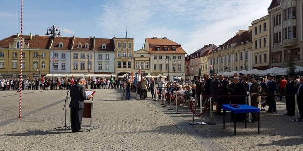 W poprzednich latach o rocznicy agresji sowieckiej na Polskę pamiętały tylko organizacje prawicowe takie jak Klub GP, Solidarni2010, Idee Solidarności 1980-89, Przymierze. Tego dnia w ciszy i samotności składali kwiaty pod Pomnikiem Walki i Męczeństwa. W tym roku nastał czas „dobrej zmiany” . Była orkiestra wojskowa, honorowa warta , poczty sztandarowe. Przemówienie wygłosił Wicewojewoda Kujawsko – Pomorski Józef Ramlau. Uroczystości miały charakter szczególny także z innego powodu. Po raz ostatni odbywały się one w miejscu upamiętniającym bydgoszczan rozstrzeliwanych w pierwszych dniach września 1939r. Stojący tu pomnik od dawna przeszkadza włodarzom miasta. Poprzedni prezydent chciał go przenieś na peryferia miasta. Planów tych jednak nie zdążył zrealizować, obecny rządzący z ramienia Platformy Obywatelskiej podjął już decyzje o „postawieniu go do kąta”, czyli przesunięcia go w róg rynku, po to by nie rzucał się za bardzo w oczy i nie drażnił Niemców. Utrudni to też organizowanie w tym miejscu uroczystości rocznicowych. Nieoficjalnie mówi się, że w miejscu, w którym rozstrzeliwano bydgoszczan powstanie miejsce na scenę i będą tu organizowane imprezy rozrywkowe. Organizacje prawicowe jednoznacznie potępiły te plany. Od ponad roku trwają też zabiegi o zmianę napisu znajdującego się na sokole Pomnika Walki i Męczeństwa obecnie brzmi on „ W hołdzie ofiarom faszyzmu 1939 – 45”, podczas gdy w rzeczywistości Polaków rozstrzeliwali niemieccy naziści, apomnik jest także miejsce gdzie bydgoszczanie składają hołd ofiarom komunizmu. Stąd też zmianę znajdującego się na sokole napisu zaproponował działacz opozycji demokratycznej, wielokrotny mistrz Polski we wioślarstwie Andrzej Mazurowicz. Odpowiedni wniosek w tej sprawie do Prezydenta Miasta Bydgoszczy wniosło Stowarzyszenie Osób Represjonowanych w PRL „Przymierze” , ten z koli przesłał go do zaopiniowania do Rady Ochrony Pomników Walki i Męczeństwa, która zmiany zaopiniowała pozytywnie. Mimo to włodarze miasta nie podejmują odpowiednich działań w celu wprowadzenia oczekiwanych zmian. W tej sytuacji działacze Przymierza wspierani przez Przewodniczącego Klubu GP K. Frelichowskiego podczas uroczystości stanęli pod pomnikiem z banerem zawierającym proponowany nowy napis: „Pamięci ofiar totalitaryzmu niemieckiego 1939-45 oraz sowieckiego i polskiego aparatu represji1937-89”.  W ten sposób srali się przypomnieć władzom o swoim postulacie.