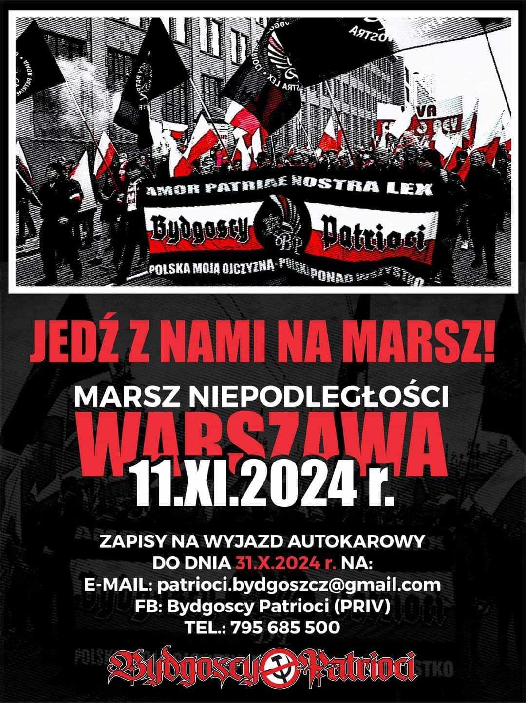 Bydgoscy Patrioci, Klub Gazety Polskiej, Solidarni 2010 informują, że rozpoczęły się zapisy na wyjazd do Warszawy w dniu 11 listopada.