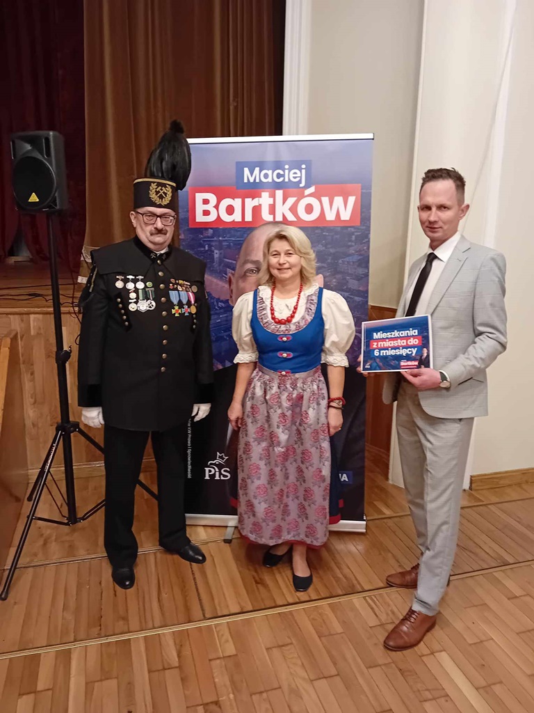 Podziękował Klubowi za zorganizowanie spotkania i wszystkim, którzy przyjęli zaproszenie (było na sali około 150-osób). Pozdrowił przedstawicieli Klubów GP z Bytomia, Zabrza, Gliwic. Przedstawił obecną sytuację polityczną w Polsce i zachęcił do pełnej mobilizacji w wyborach, które w tym roku odbędą się w Polsce. Najbliższe są wybory samorządowe 7 kwietnia. Poseł przedstawił kandydata na Prezydenta Bytomia obozu prawicy, KW PiS, radnego RM w Bytomiu Macieja Bartków. Głos zabrał kandydat Maciej Bartków – administrywista, przewodniczący struktur miejskich Prawa i Sprawiedliwości w Bytomiu, kiedyś przewodniczący Klubu GP w Bytomiu. Kandydat między innymi mówił, w skrócie o swoim programie, w którym chce uczciwie zarządzać Miastem, skrócić oczekiwanie na mieszkania komunalne do 6-m-cy. Następnie prowadzący przedstawili gościa specjalnego – Pawła Piekarczyka, barda polskiej piosenki patriotycznej.