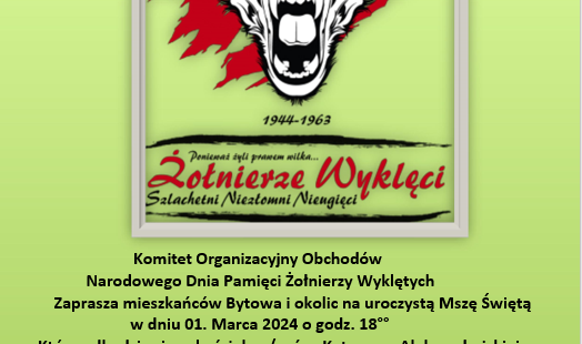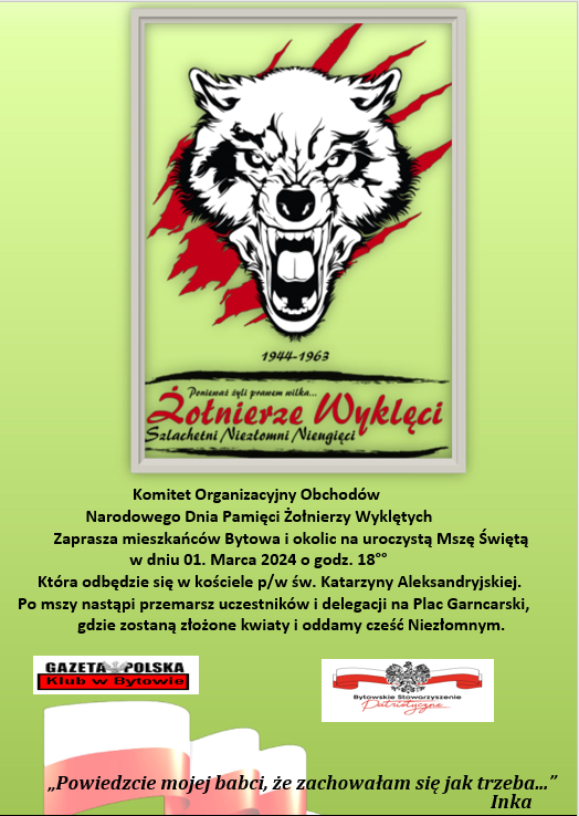 Klub „Gazety Polskiej” w Bytowie zaprasza do uczestnictwa w obchodach Narodowego Dnia Pamięci „Żołnierzy Wyklętych”