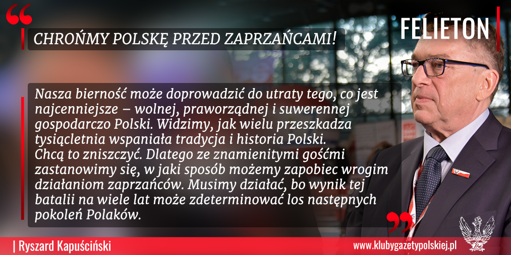Dzisiaj w Sulejowie rozpoczyna się VII Nadzwyczajny Zjazd Klubów „Gazety Polskiej”. Wielu Czytelników może się zastanawiać, dlaczego organizujemy kolejny zjazd. Jakie są powody, że już po dwóch miesiącach od ostatniego spotkania środowisko klubów „GP” postanowiło spotkać się ponownie. Odpowiedź jest prosta: doszliśmy do wniosku, że sytuacja polityczna w Polsce i Europie obliguje nas do ponownego spotkania. Każdy, kto interesuje się sprawami polskimi, kto interesuje się polityką, widzi, jak Polska jest osaczana przez wrogów zewnętrznych i – co ze zgorszeniem obserwujemy – przez wrogów wewnętrznych. Widzimy nagonkę brukselskich urzędników na konstytucyjne organy państwa i, co haniebne, maski opadły, więc zobaczyliśmy, jak wielu wrogów ukryło się w partiach opozycyjnych. Nasza bierność może doprowadzić do utraty tego, co jest najcenniejsze – wolnej, praworządnej i suwerennej gospodarczo Polski. Widzimy, jak wielu przeszkadza tysiącletnia wspaniała tradycja i historia Polski. Chcą to zniszczyć. Dlatego ze znamienitymi gośćmi zastanowimy się, w jaki sposób możemy zapobiec wrogim działaniom zaprzańców. Musimy działać, bo wynik tej batalii na wiele lat może zdeterminować los następnych pokoleń Polaków.