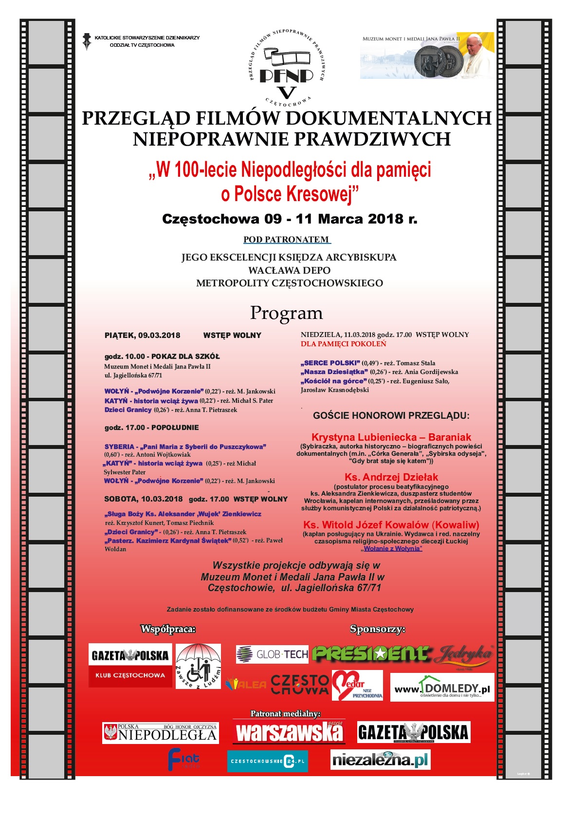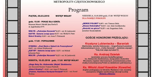 Wszystkie projekcje odbywają się w Muzeum Monet i Medali Jana Pawła II w Częstochowie, ul. Jagiellońska 67/71