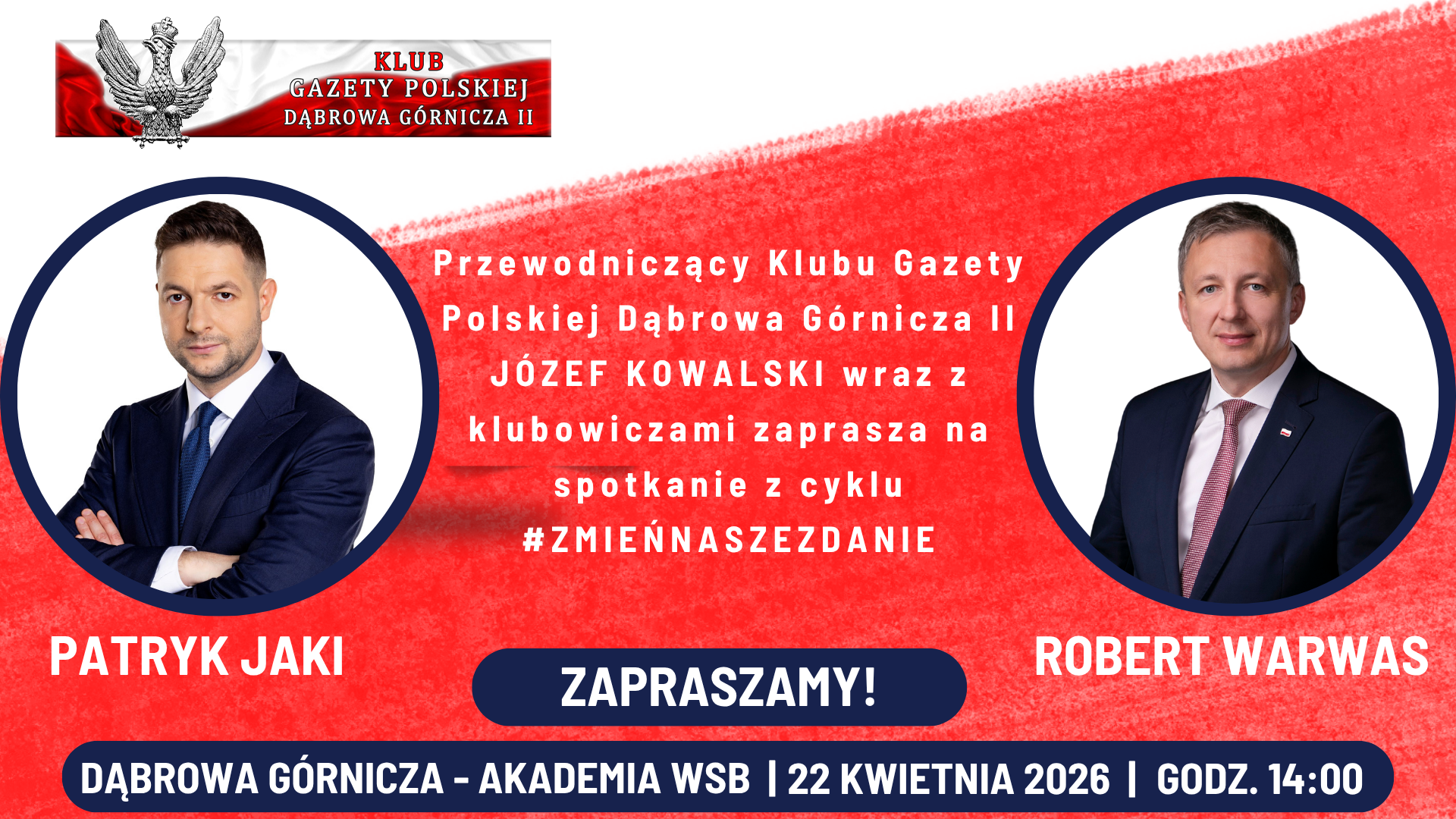 DĄBROWA GÓRNICZA II | ZAPROSZENIE 22.04 – Spotkanie z Posłami: Patrykiem Jakim i Robertem Warwasem