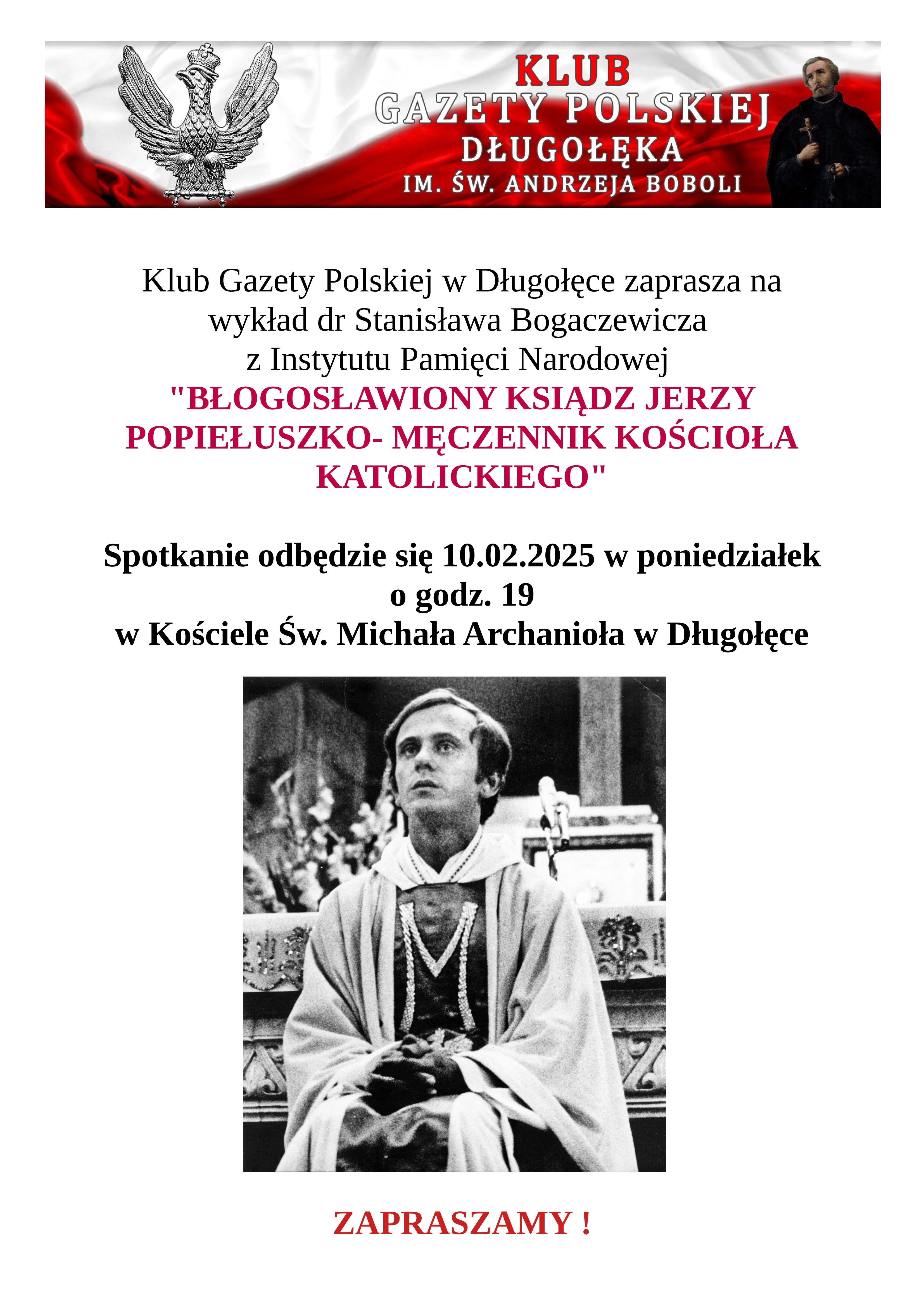 „BŁOGOSŁAWIONY KSIĄDZ JERZY POPIEŁUSZKO – MĘCZENNIK KOŚCIOŁA KATOLICKIEGO”