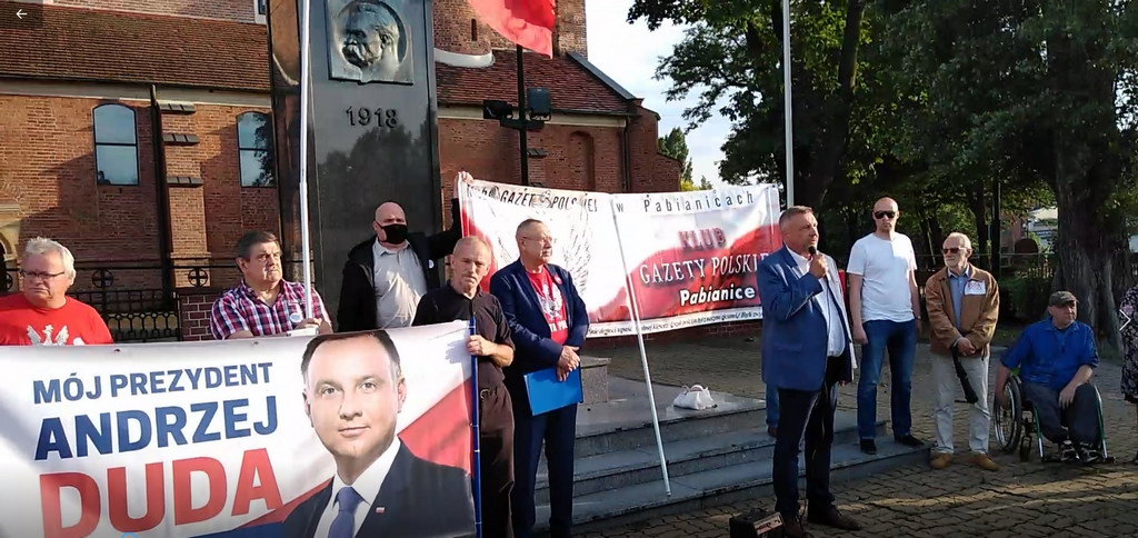 Klub Gazety Polskiej z Pabianic zgodnie z zapowiedzią tuż przed wyborami w piątek 26 czerwca rozprowadzał na pabianickim rynku materiały promujące naszego prezydenta Andrzeja Dudę. O godzinie 19:00 przed pomnikiem „Legionisty” zorganizował wiec poparcia dla PAD, W wiecu uczestniczyli mieszkańcy Pabianic, Między innymi przemawiał senator Maciej Łuczak i były poseł Krzysztof Ciebiada. Wiec był formą mobilizacji przed niedzielnymi wyborami.