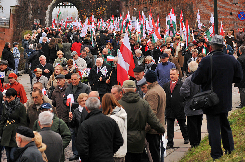 Obchody Święta Niepodległości 11 listopada rozpoczęły się poranną mszą świętą w Katedrze Wawelskiej, po czym wśród tysięcy krakowian i turystów, wśród burzy oklasków, niosąc polskie i węgierskie flagi, śpiewając polskie i węgierskie pieśni patriotyczne, wszyscy przeszli w patriotycznym pochodzie Drogą Królewską na pl. Jana Matejki, gdzie przed Grobem Nieznanego Żołnierza złożono wieńce w imieniu Klubów „Gazety Polskiej” i narodu węgierskiego.