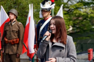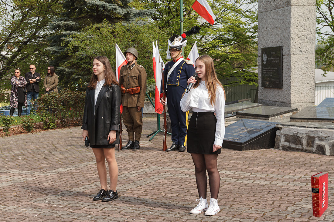 W programie słowno-muzycznym wystąpiły: Karolina Bochen, Natalia Bielecka, Julia Chwalińska oraz Zuzanna Franczak z DOK. Uroczystość uświetnili rekonstruktorzy ze Stowarzyszenia Rekonstrukcji Historycznej SZPICA, którzy po raz pierwszy wystąpili w strojach z epoki, w barwach 2. Pułku Ułanów Księstwa Warszawskiego. Na zakończenie uroczystości rekonstruktorzy oddali salwę honorową z broni czarno prochowej. Po odegraniu „Marszu Konstytucji 3 maja” była możliwość zrobienia wspólnej fotografii.