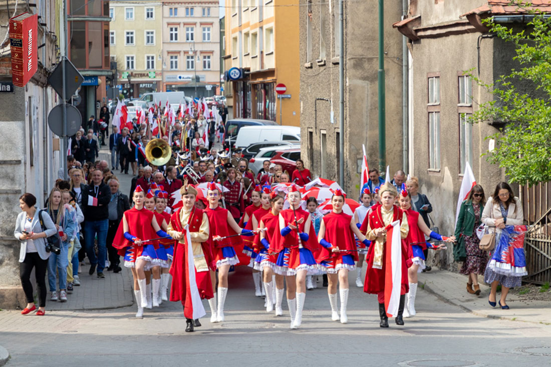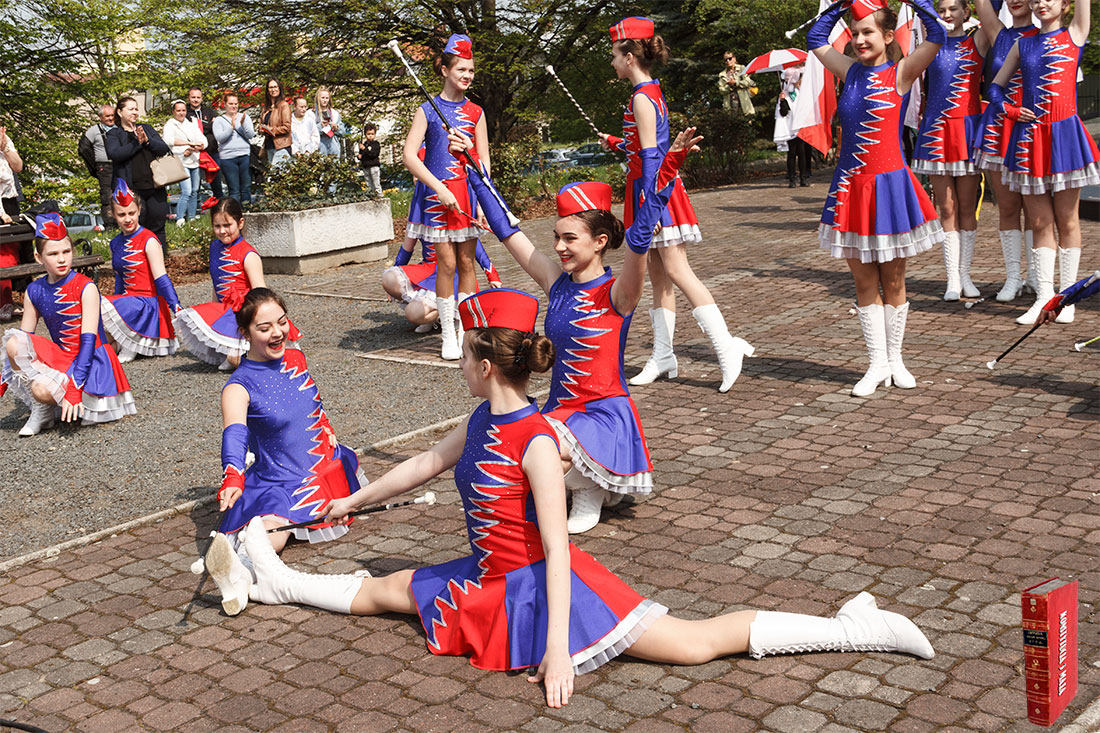 Zwieńczeniem dzierżoniowskich obchodów Święta Konstytucji 3 Maja był przemarsz i występ mażoretek z Dzierżoniowskiego Ośrodka Kultury pod opieką Anny Trzeciak i Lubomira Szmida. Dziewczęta zachwyciły widzów tańcem z flagami RP. Jestem przekonany, że taniec z biało-czerwonymi flagami pobudził w widzach poczucie patriotyzmu i utrwalił umiłowanie Ojczyzny.