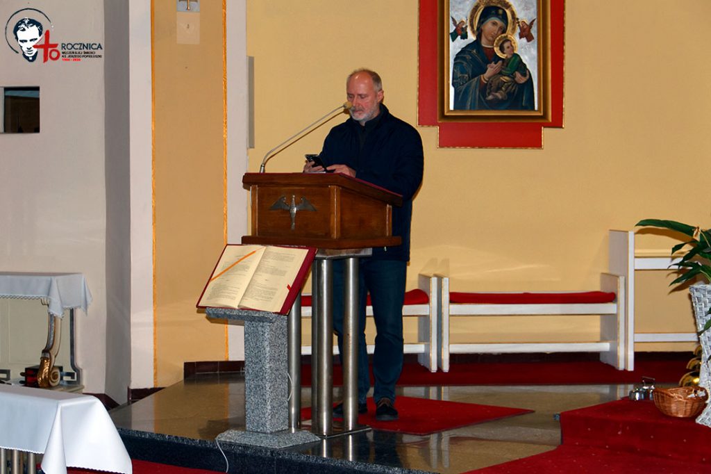 W świecie księdza Jerzego Popiełuszki rozgrywał się spór o wartości. Komunizm fałszował historię, posługiwał się kłamstwem, przemocą, odbierał ludziom wolność. Spór o wartości wciąż trwa. Wolność bez Boga i bez prawdy staje się dziś pociągającą dla niektórych karykaturą wolności. Manipulacje wprowadzają chaos, podziały, nienawiść. Wciąż trzeba pokonywać lęk. W roku 40. rocznicy męczeństwa błogosławionego księdza Jerzego Popiełuszki prośmy Boga o dar prawdy i wolności w sercach, w Ojczyźnie i na świecie. Prośmy również o kanonizację błogosławionego, skromnego kapłana z Podlasia, aby jego świadectwo dotarło do całego świata”.