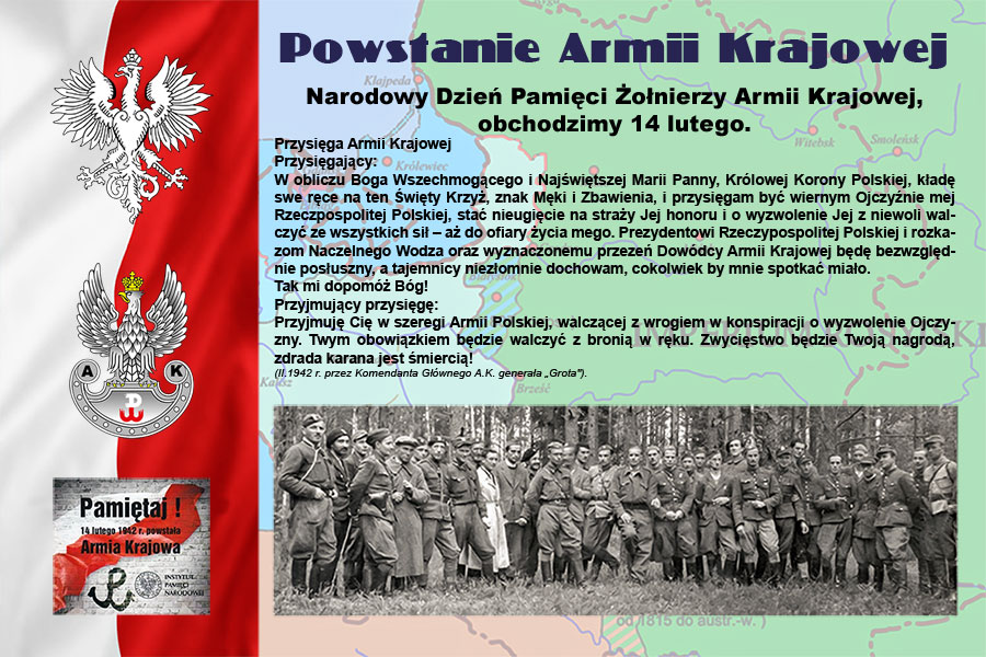 Ustawa o ustanowieniu Narodowego Dnia Pamięci Żołnierzy Armii Krajowej została jednogłośnie przyjęta przez Sejm 9 stycznia br. Inicjatorem powstania tego święta państwowego był Urząd do Spraw Kombatantów i Osób Represjonowanych. 14 lutego 1942 . Naczelny Wódz gen. Władysław Sikorski wydał rozkaz o przekształceniu Związku Walki zbrojnej w Armię Krajową. – Udało się wspólnie, bez żadnych sporów, zasypać lukę, która powstała w ostatnich latach. Przez 35 lat wolnej Polski dorobiliśmy się wielu bardzo ważnych świąt państwowych, także tych dotyczących polskiego oręża oraz żołnierzy walczących na różnych frontach II wojny światowej. Brakowało jednego dnia, w którym moglibyśmy uczcić Armię Krajową – największą podziemną armię polską i jedną z największych podziemnych armii europejskich – powiedział PAP szef Urzędu Lech Parell.
