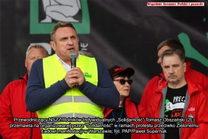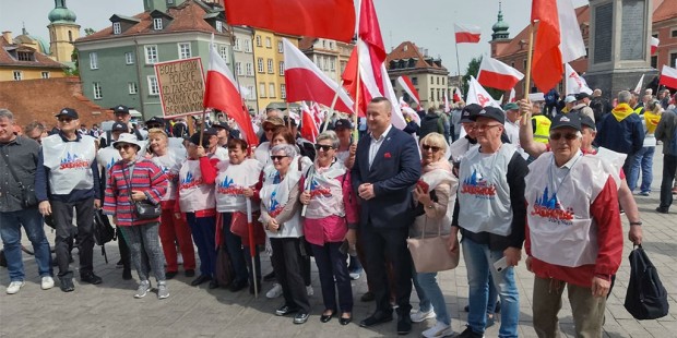 – Ogłaszamy pospolite ruszenie, jeśli chodzi o zbieranie podpisów pod referendum obywatelskim, aby Polacy mogli się faktycznie wypowiedzieć i wyrzucić Zielony Ład do kosza – powiedział 10.05. na demonstracji przewodniczący Solidarności Piotr Duda. Związkowcy protestowali przeciwko unijnej polityce klimatycznej, która w ich ocenie doprowadzi do zniszczenia polskiego rolnictwa, podniesienia cen prądu, ciepła i transportu, a także upadku lub ucieczki przemysłu poza Europę.