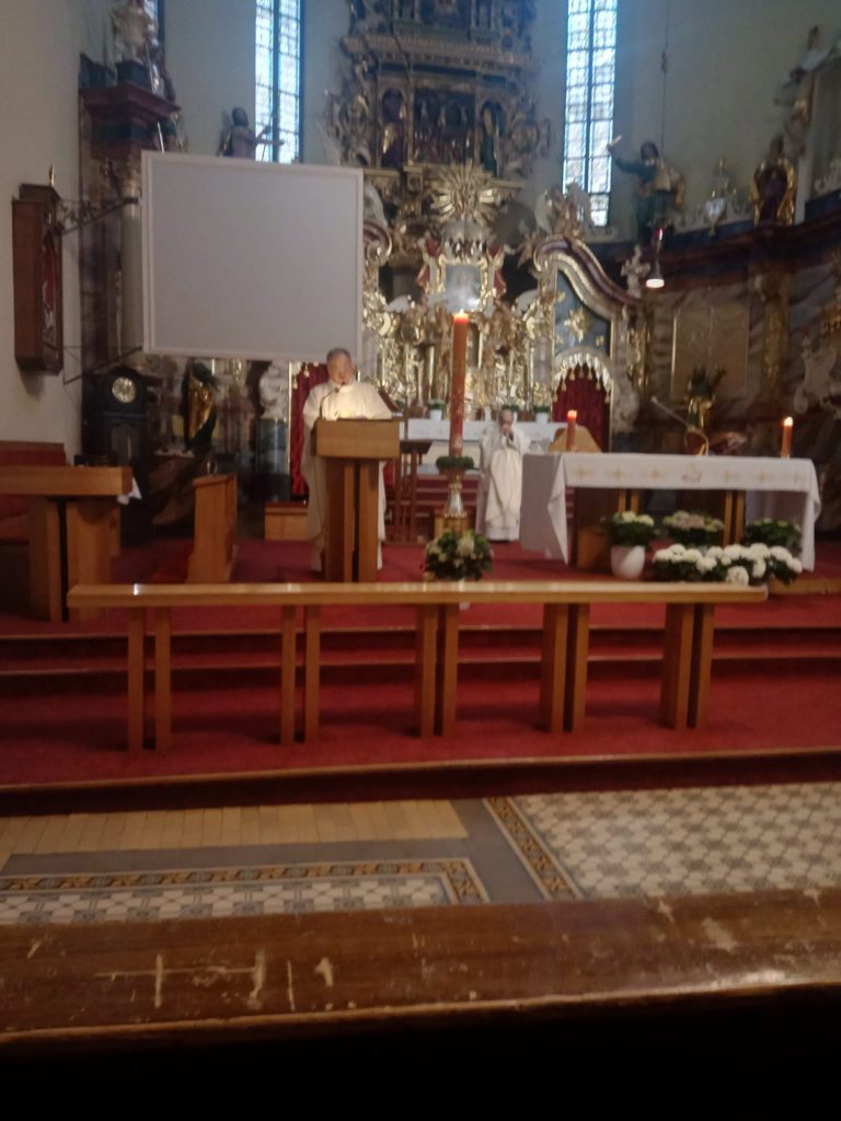 Przed godziną 18.00 spotkaliśmy się w Kościele pw. Św. Jerzego w Dzierżoniowie, gdzie znajduje się druga tablica smoleńska ufundowana przez środowiska patriotyczne powiatu dzierżoniowskiego. Inicjatorem powstania tej tablicy w kościele pw. Św. Jerzego był ówczesny wikary ksiądz Janusz Krzeszowiec.