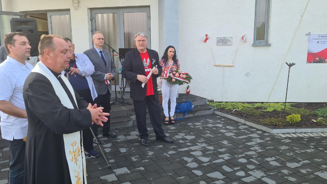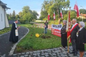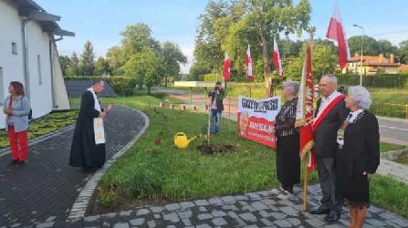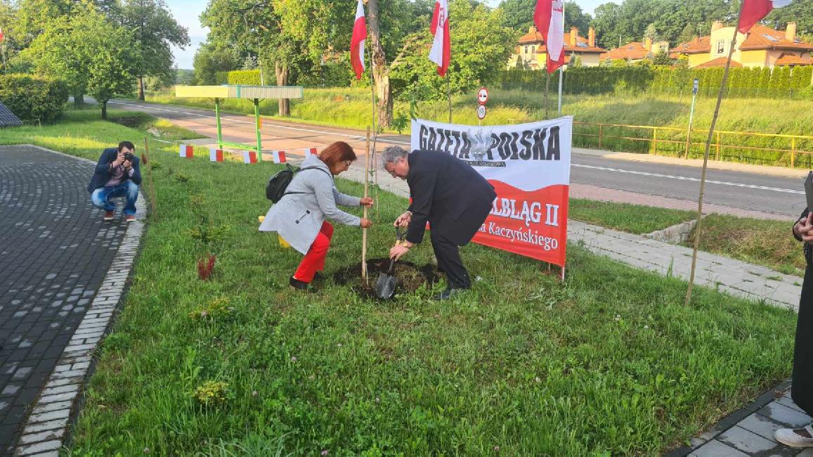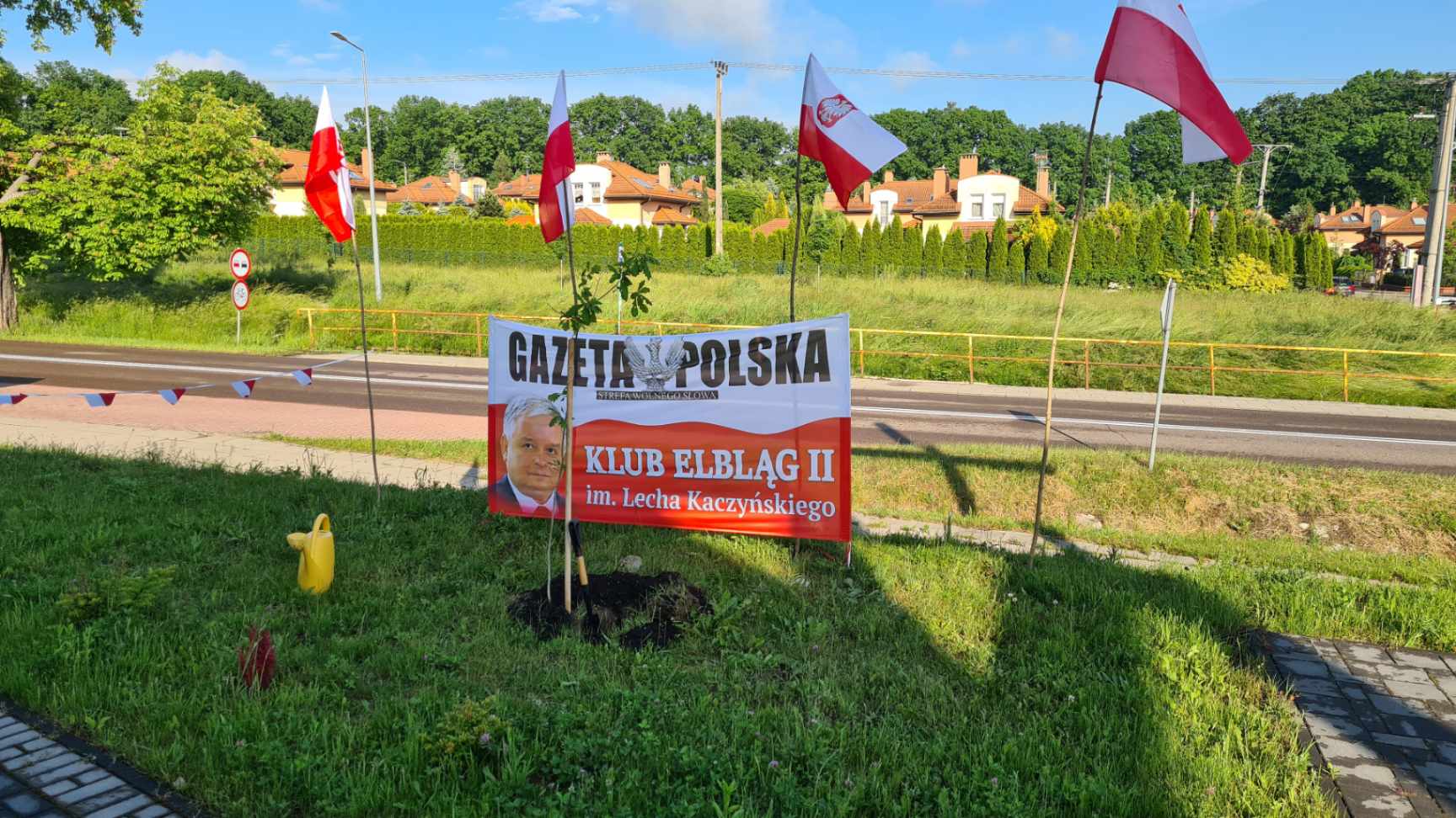 Dzięki uprzejmości miejscowego Proboszcza Janusza, Klub Gazety Polskiej Elbląg II im. Lecha Kaczyńskiego w obecności miejscowych radnych PIS i licznie obecnych na tej uroczystości mieszkańców Elbląga, ze szczególnym wyróżnieniem obecności Związku Żołnierzy Armii Krajowej ze Sztandarem Armii Krajowej, posadził dąb i odsłonił tablicę ku pamięci św. Pamięci Prezydenta Lecha Kaczyńskiego.