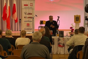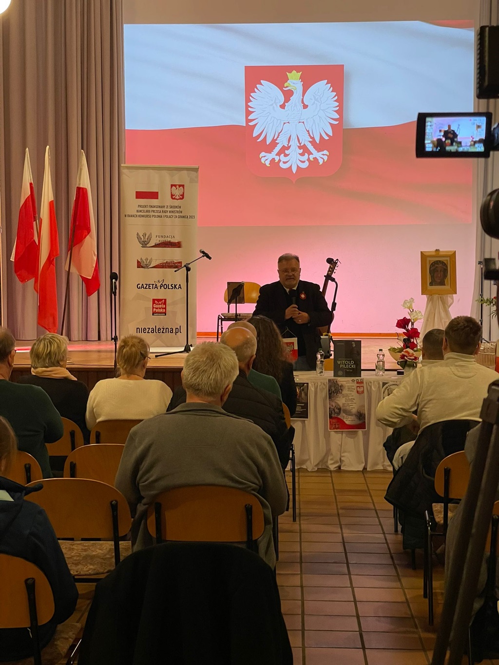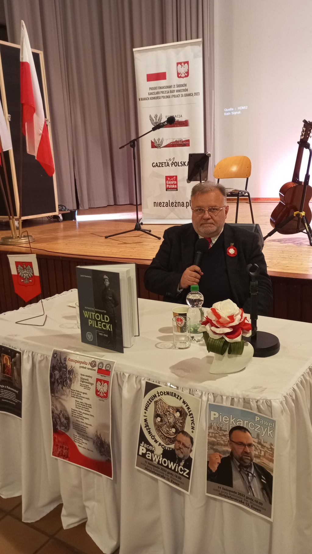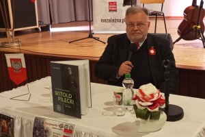 Następną odsłoną tego wieczoru był wykład dr Jacka Pawłowicza, który z pietyzmem opowiedział zebranym o całym życiu, aż do tragicznej śmierci Rotmistrza Pileckiego, zamordowanego strzałem w tył głowy na terenach ówczesnego więzienia na Rakowieckiej w Warszawie.  Mówił on o domu rodzinnym Rotmistrza, o jego bohaterskich zmaganiach z okupantem niemieckim, ubeckim śledztwie i samym wykonaniu wyroku w miejscu, które współcześnie stało się Muzeum Żołnierzy Wyklętych i Więźniów Politycznych PRL, gdzie dr Pawłowicz jest zastępcą dyrektora. W swoim wykładzie wspomniał także o inicjatywie, którą prowadzi wraz z córką Rotmistrza p. Zofią Pilecką, polegającą na sadzeniu Dębów Rotmistrza Witolda Pileckiego w Polsce i Europie.