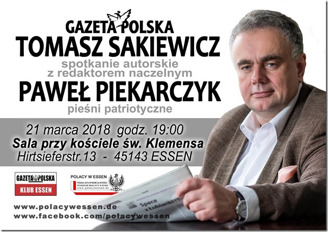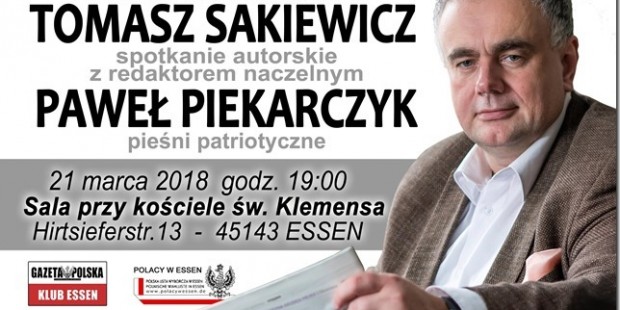 Serdecznie zapraszamy na spotkanie z redaktorem naczelnym Gazety Polskiej Tomaszem Sakiewiczem.