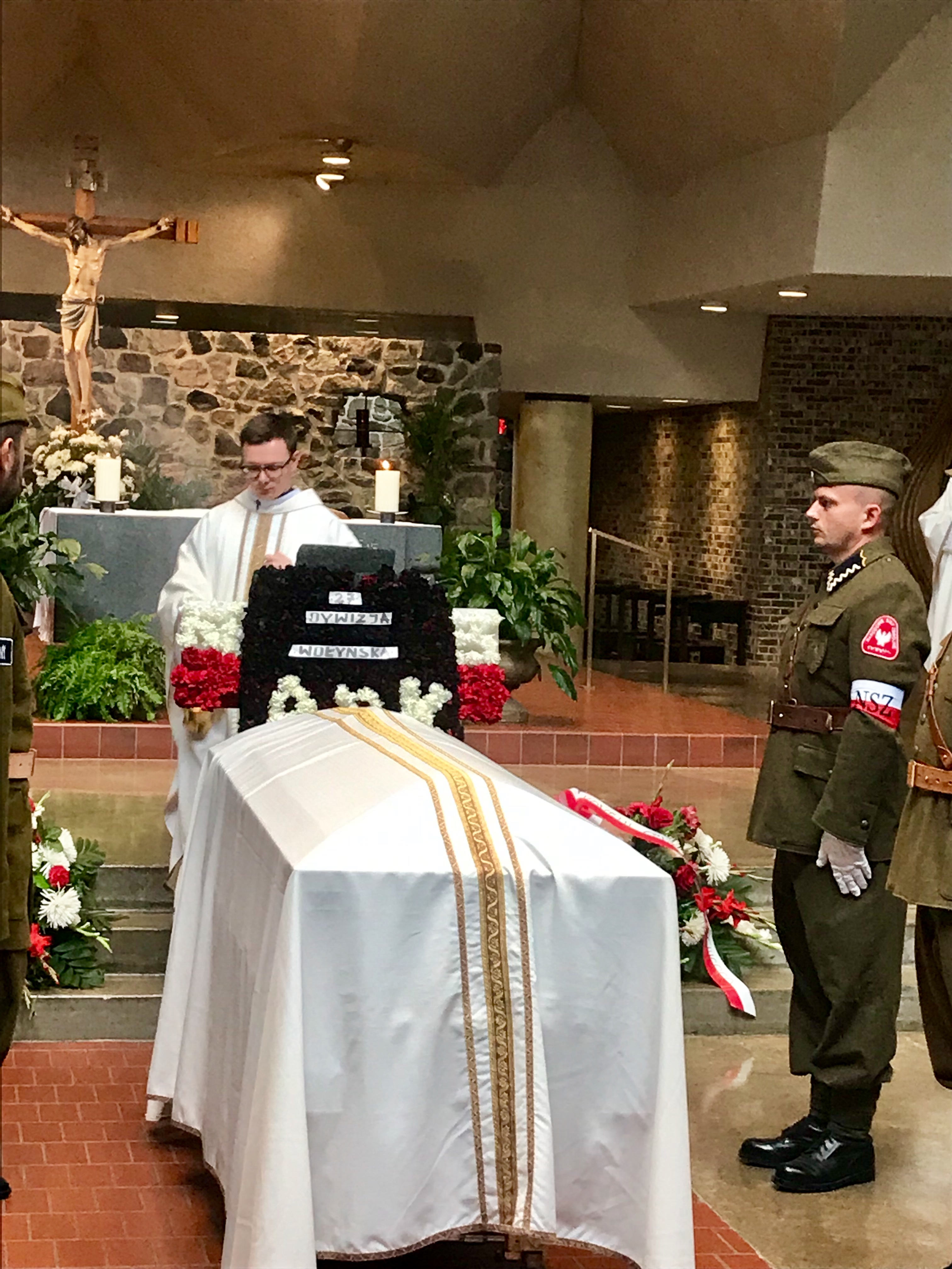 Podczas żałobnej Mszy Świętej, która odbyła się w kościele św. Jana Brebeuf, Konsul RP w Chicago, pan Piotr Semeniuk, odczytał list od Pana Prezydenta Andrzeja Dudy. Zabrali również głos przedstawiciele polskiego parlamentu pani poseł Małgorzata Wypych i pan poseł Zbigniew Gryglas. Na zakończenie, z racji tego że porucznik Filip Ożarowski był honorowym członkiem Związku Żołnierzy Narodowych Sił Zbrojnych, przewodniczący Związku Żołnierzy NSZ – Koło Chicago, pan Arkadiusz Cimoch, odczytał biografię bohatera. W tej smutnej uroczystości, uczestniczył również Jacek Szklarski, przedstawiciel Komitetu Smoleńsko-Katyńskiego, a także członek Klubów Gazety Polskiej, wspominając ostatnią wizytę śp. porucznika Ożarowskiego w Amerykańskiej Częstochowie, na obchodach IX rocznicy Katastrofy Smoleńskiej, gdzie został obdarowany pamiątkowym ryngrafem z wizerunkiem z pomnika ku czci Żołnierzy Niezłomnych.