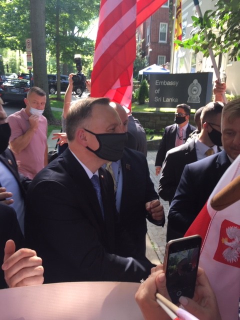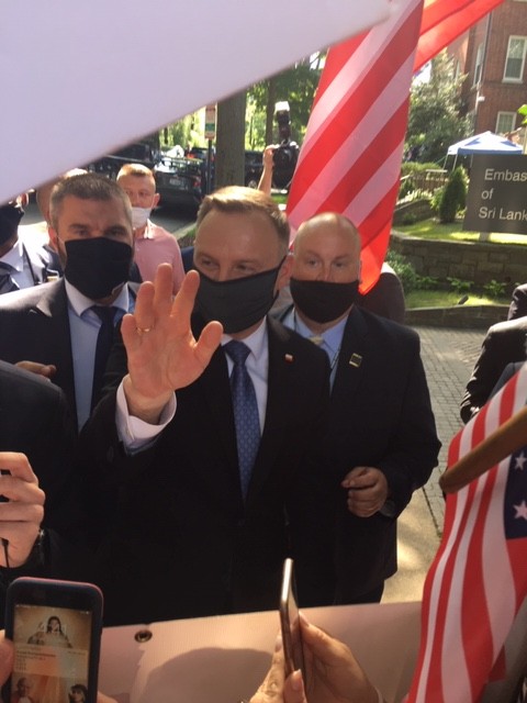 Prezydent Andrzej Duda po spotkaniu z Prezydentem Trumpem podszedł do nasze ok 100 osobowej grupy pod rezydencją Ambasadora. Relacja M. Bojko jest absolutnie prawdziwa. Ludzie maja mnóstwo tych zdjęć . Prezydent był bezpośrednio po spotkaniu z Trumpem, zanim wszedł do rezydencji na spotkanie z mediami zdecydował się najpierw podejść do nas. Pani Bojko napisała relacje , żadnej innej grupy oprócz naszej w tym czasie tam nie było.