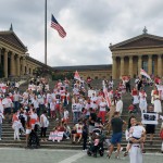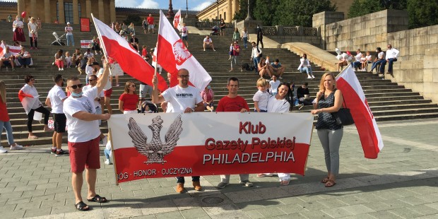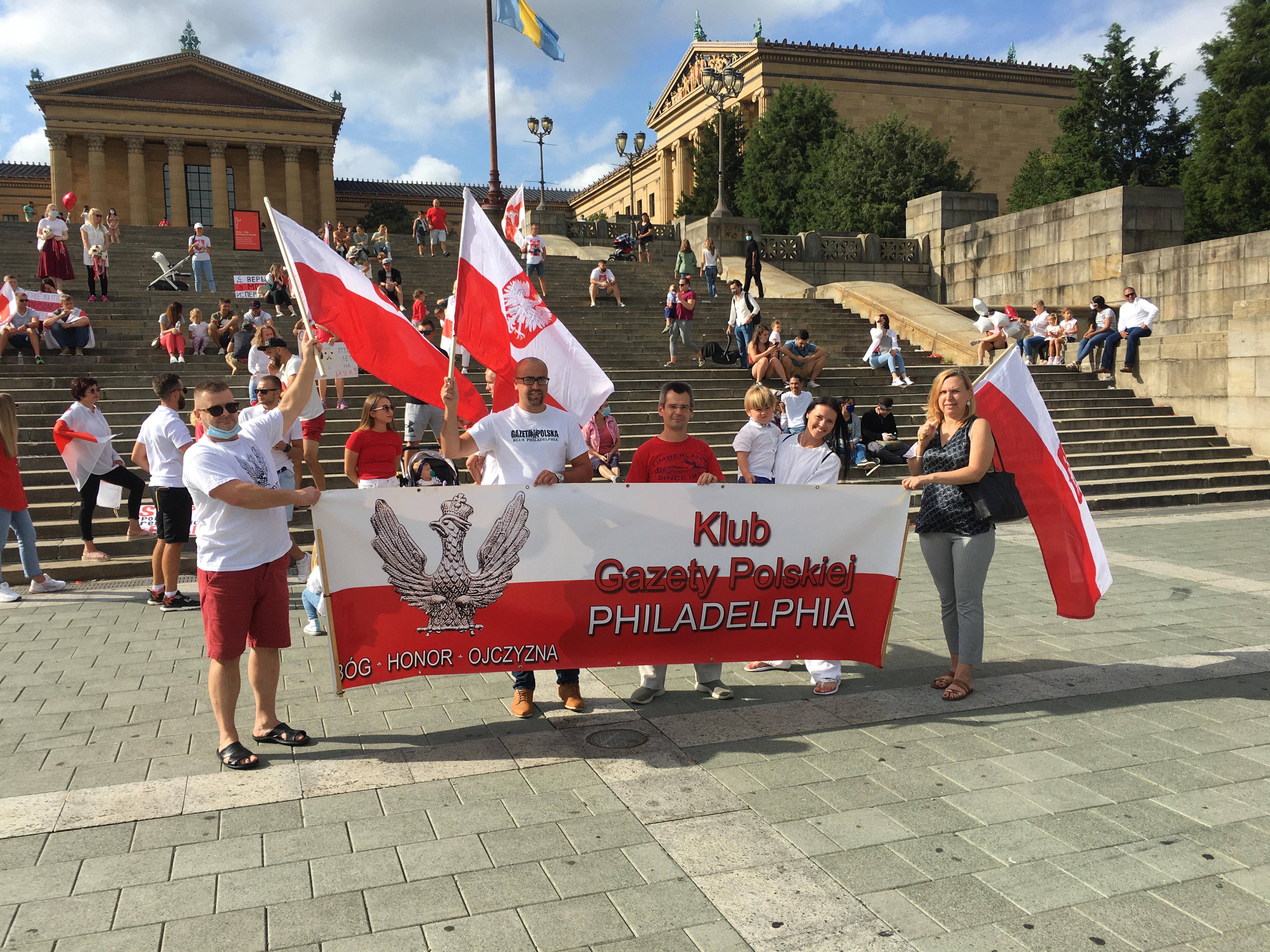 Nie przypadkowo wybrali miejsce swojej manifestacji w Filadelfii na schodach przy Art Muzeum Schody te bowiem są symbolem heroicznych zmagań z własnymi słabościami bohatera filmu „Rocky” w którego wcielił się Sylvester Stallone. Z takimi samymi słabościami w walce o nieodległość i demokracje musi się zmierzyć obecna Białoruś. Klub Gazety Polskiej z Filadelfii oraz „Dom Polski” i inne organizacje o charakterze patriotyczno – niepodległościowym również wsparły swoją obecnością pikietę na rzecz polskiego sąsiada zza wschodniej granicy. Na tle białoruskich biało-czerwono-białych flag, łudząco kolorystycznie przypominających polskie barwy narodowe, widać było powiewające flagi biało czerwone z polskim orłem w koronie. Nie uszło to uwadze organizatorów wiecu, którzy poprosili o skierowanie kilku słów do zebranych. Andrzej Wiśniewski, prezes „Domu Polskiego” w Filadelfii w języku angielskim powiedział: „ kilka lat temu wspieraliśmy tutaj dążenia Ukrainy do odzyskania niepodległości, dzisiaj jesteśmy tutaj dla Was, i zawsze będziemy z wami jeśli będziecie tego potrzebować. Czekamy, aż wrócicie do Europy… ” Kolejną osobą, która wsparła zebranych był Tadeusz Antoniak, przewodniczący Klubu Gazety Polskiej w Filadelfii oraz Komitetu Smoleńsko – Katyńskiego. Z pełnym przekonaniem powiedział do zebranych „(…) 40 lat temu w Polsce narodziła się „ Solidarność” a teraz Polacy są solidarni z Białorusią. Polacy w czasach Solidarności postawili na Ronalda Reagana, wy teraz postawcie na Donalda Trumpa, to On powiedział że Białoruś musi być wolna i ja pomogę w tych dążeniach”. Musicie wiedzieć, że Nord Stream 2, który miał zniewolić Polskę, kraje bałtyckie, Ukrainę i Białoruś jest zastopowany dzięki obecnemu Prezydentowi Stanów Zjednoczonych. On walczy przeciwko Putinowi prawdziwie. Projekt „Trójmorze”, który jest inwestycją Ameryki i Polski uwzględnia też Białoruś ale tylko w nowym rozdaniu, dlatego Łukaszenko musi odejść”.
