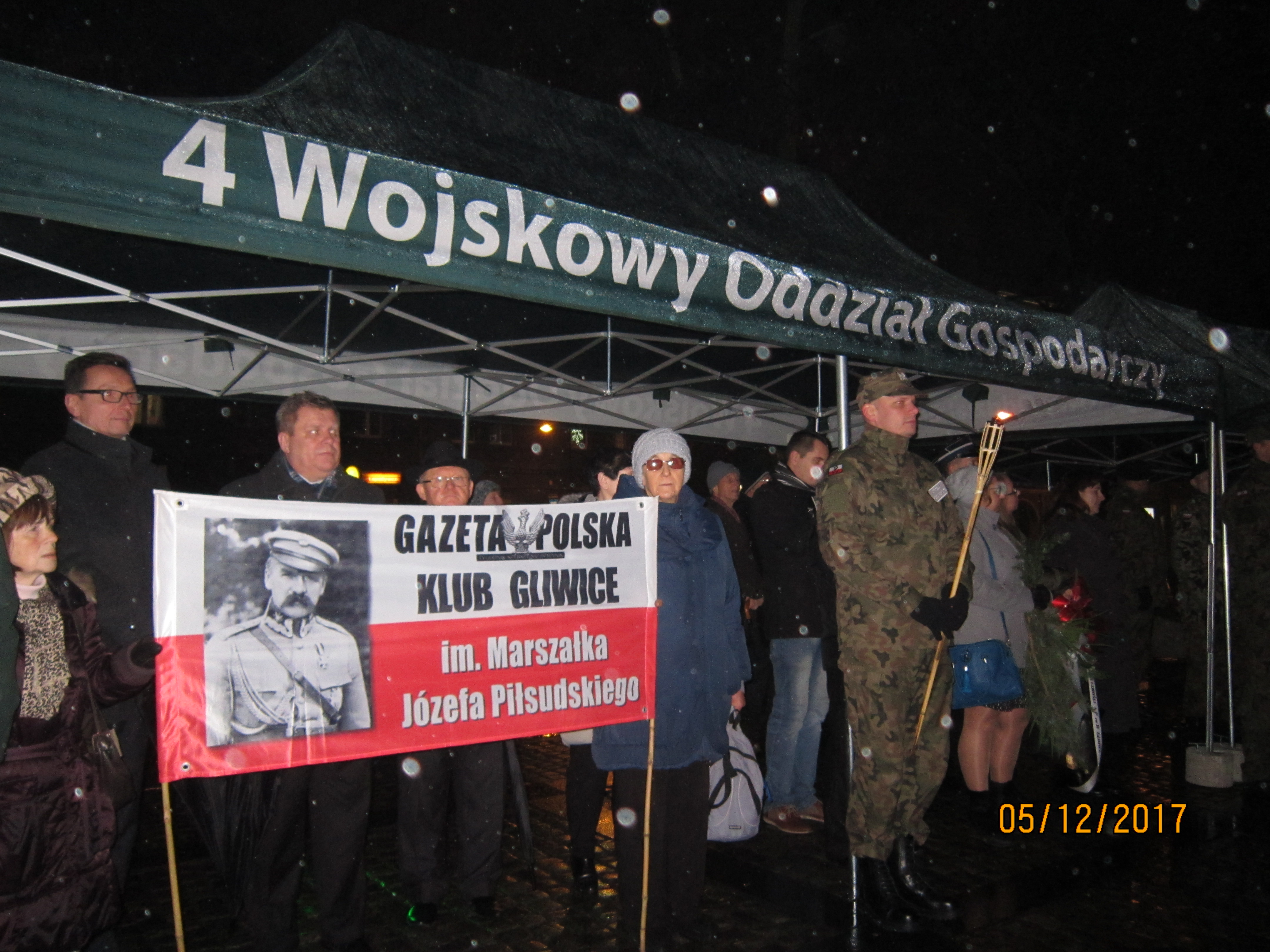 5.12.2017. w Gliwicach obchodzono 150 rocznicę urodzin Marszałka Józefa Piłsudskiego. Uroczystość zorganizowana została przez Prezydenta Miasta Gliwice i Dowódcę Garnizonu Gliwice.Czynnymi uczestnikami uroczystości byli Strzelcy Rzeczypospolitej, Gliwicki Klub Gazety Polskiej oraz młodzież szkolna. Na zgromadzeniu  pod pomnikiem Marszałka Strzelec Rzeczypospolitej przedstawił sylwetkę Józefa Piłsudskiego, młodzież szkoły podstawowej nr.8 w Bojkowie zaprezentowała okolicznościową inscenizację. Następnie odbył się uroczysty apel wojskowy; po czym złożono kwiaty, – między innymi od Gliwickiego Klubu Gazety Polskiej im. Marszałka oraz  Strzelców Rzeczypospolitej wraz z prezesem Światowego Związku AK. Po  uroczystości prezes  pan por. Włodzimierz Kołkowski został zaproszony na spotkanie klubowo-strzeleckie.