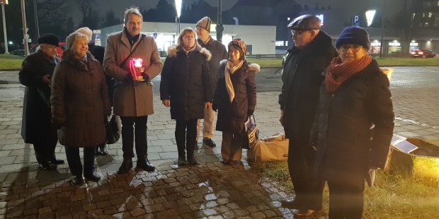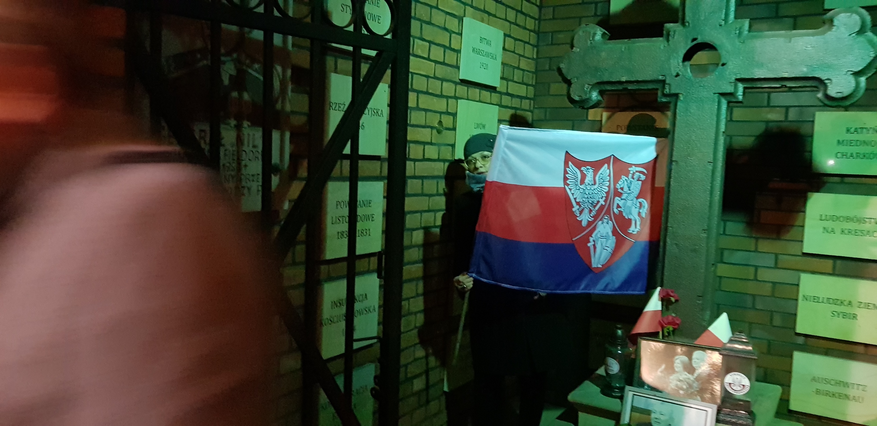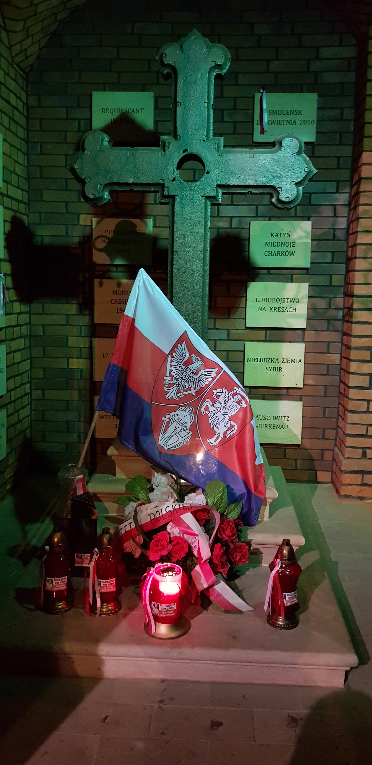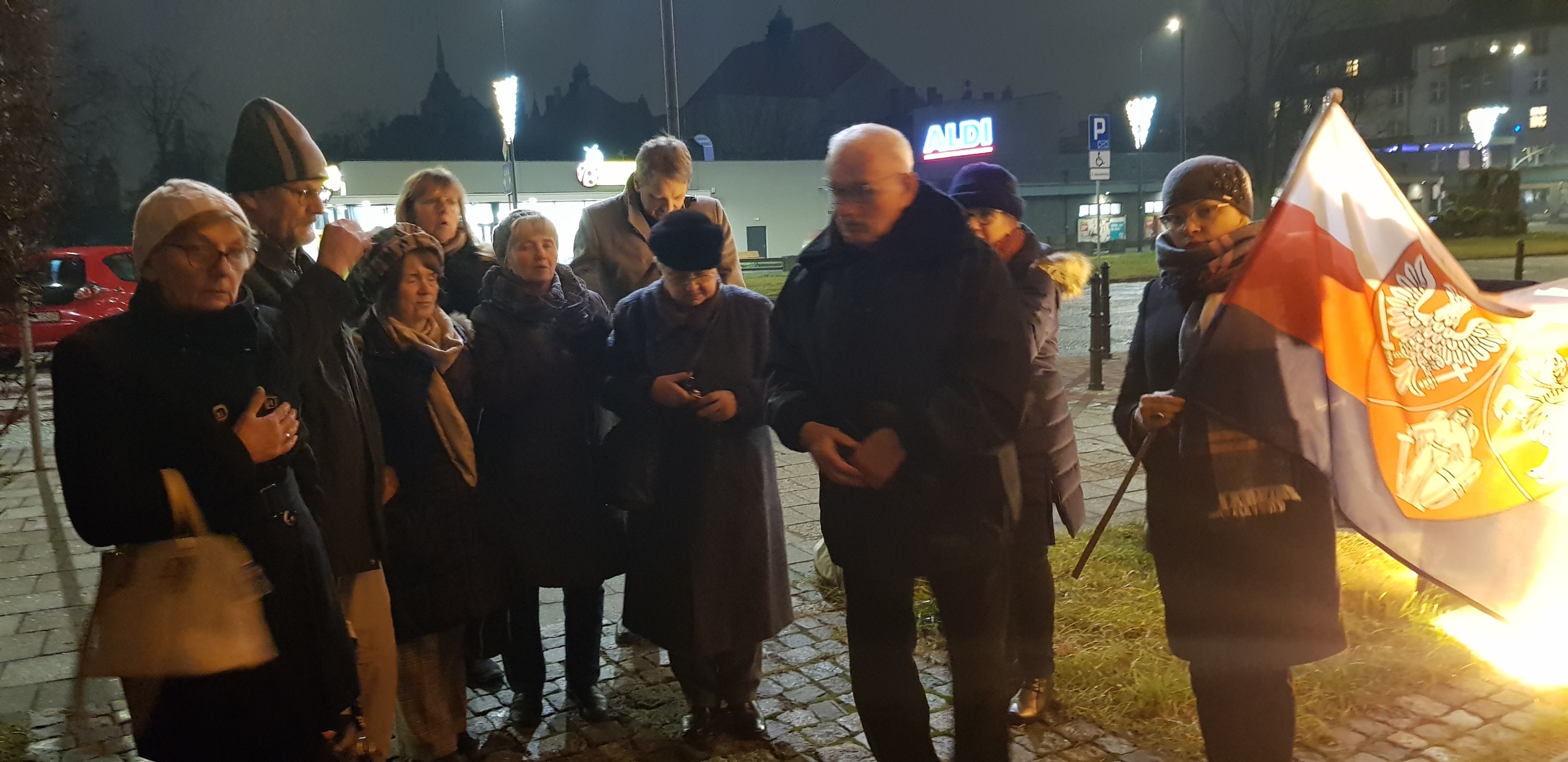 Po prelekcji klubowicze przeszli do Golgoty Polskiej. Zapalono znicz i zmówiono modlitwę za ofiarne pokolenia przodków.