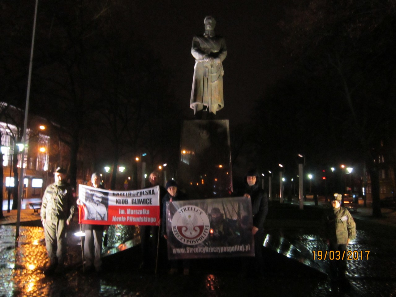 9 marca 2017 roku, Św. Józefa, czyli imieniny Marszałka Józefa Piłsudskiego, a więc i patrona Gliwickiego Klubu Gazety Polskiej. W niedzielny deszczowy wieczór delegacja Klubu oraz Strzelców Rzeczypospolitej oddała hołd Marszałkowi pod jego gliwickim pomnikiem, zapaliła znicze.