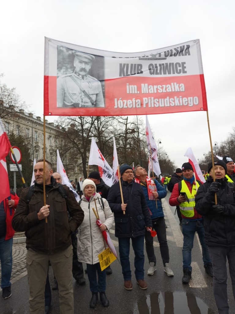 6 Marca 2024, Dzięki uprzejmości Solidarności KWK „Knurów”, delegacja Gliwickiego Klubu „Gazety Polskiej” wyjechała do Warszawy na manifestację protestacyjną Solidarności Rolniczych i popierających organizacji. W proteście brali też udział myśliwi (fot).