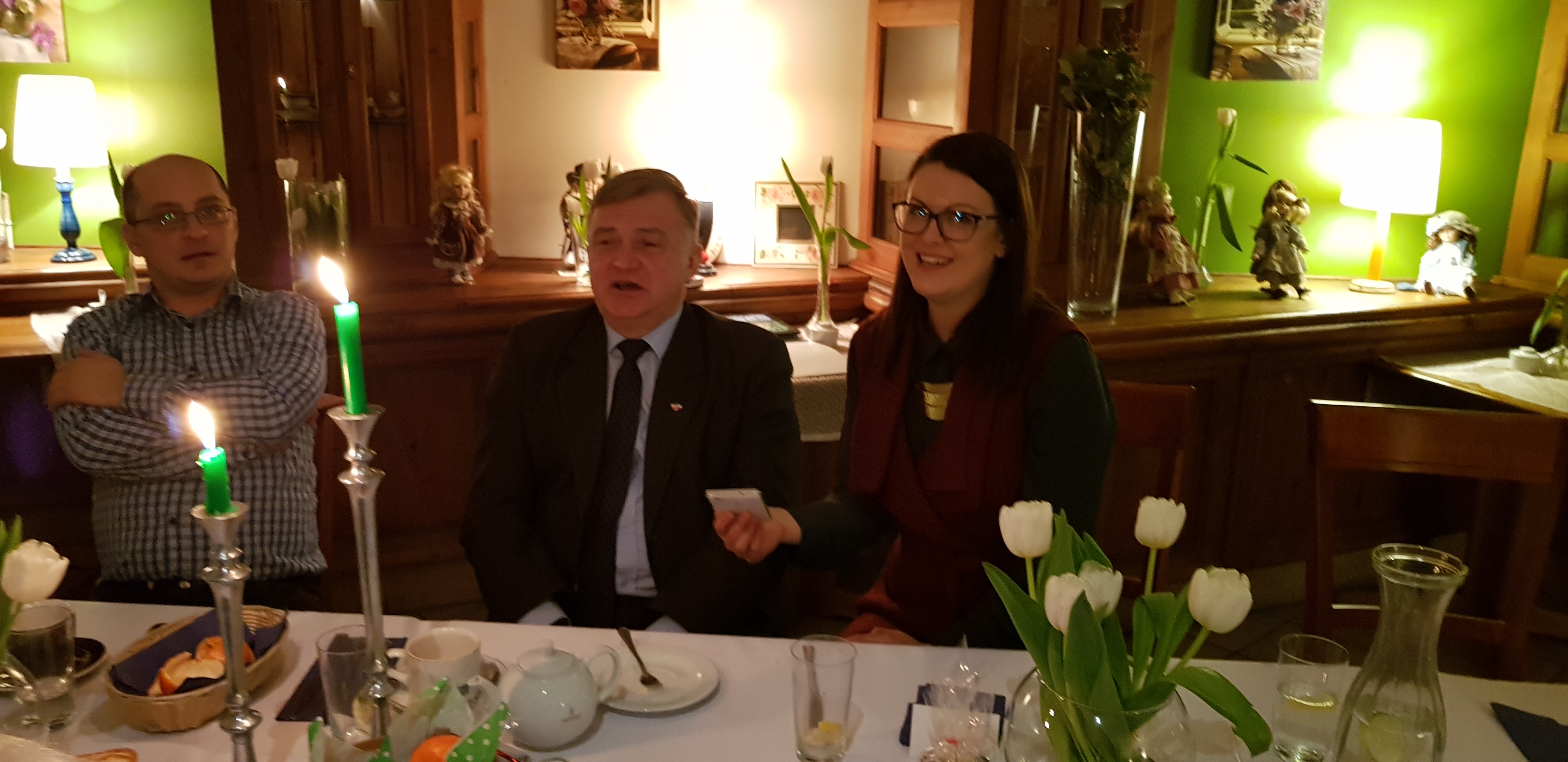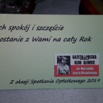Spotkanie noworoczne Gliwickiego Klubu GP rozpoczęło się Mszą św. w kościele garnizonowym p.w. św. Barbary. Proboszcz wygłosił krótką laudację i pobłogosławił działalność Kubu na cały 2019 rok. Swoją obecnością zaszyczycili klubowiczów gliwiccy radni: Ryszard Buczek, Adam Michczyński i Łukasz Chmielewski. Była też delegacja Klubu GP z Zabrza, z przewodniczącym Arkadiuszem Katafanim.