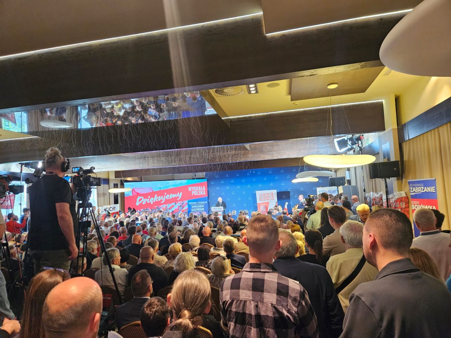 Razem około stu klubowiczów oklaskiwało wystąpienie Prezesa Prawa i Sprawiedliwości, wspierając jednocześnie regionalną akcję wyborczą kandydata na prezydenta Zabrza, kolegę Borysa Borówkę.